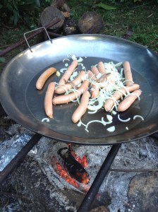 A big fat rib-eye on the bone, roasted over the coals would have been ideal. Char-grilled chicken and chorizo could have done it too. But I had sausages… yep. Sausages. Didn’t think this one through very well did I?