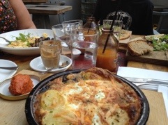 My boys had breakkie pizza’s with wild mushrooms, goat curd and thyme, and enjoyed the crap out of them. Jen had scrambled eggs with wild mushrooms, which was ok, and I had black pud, kipflers, baked eggs and romesco. I expected a little more from my baked eggs though. Even free-range organic eggs end up firm and rubbery when the get the shit cooked out of them… Although the kipflers, black pud and romesco were all fantastic.