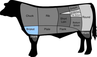 From the breast of the cow, it has a nice percentage of fat rolling through it for great flavour. And don’t be a pussy, a little bit of fat is OK, and a lot of it renders down after the long cooking process that this piece of meat is going to get treated to. It can also handle big flavours cos it isn’t a blubbering little girl like the fillet.