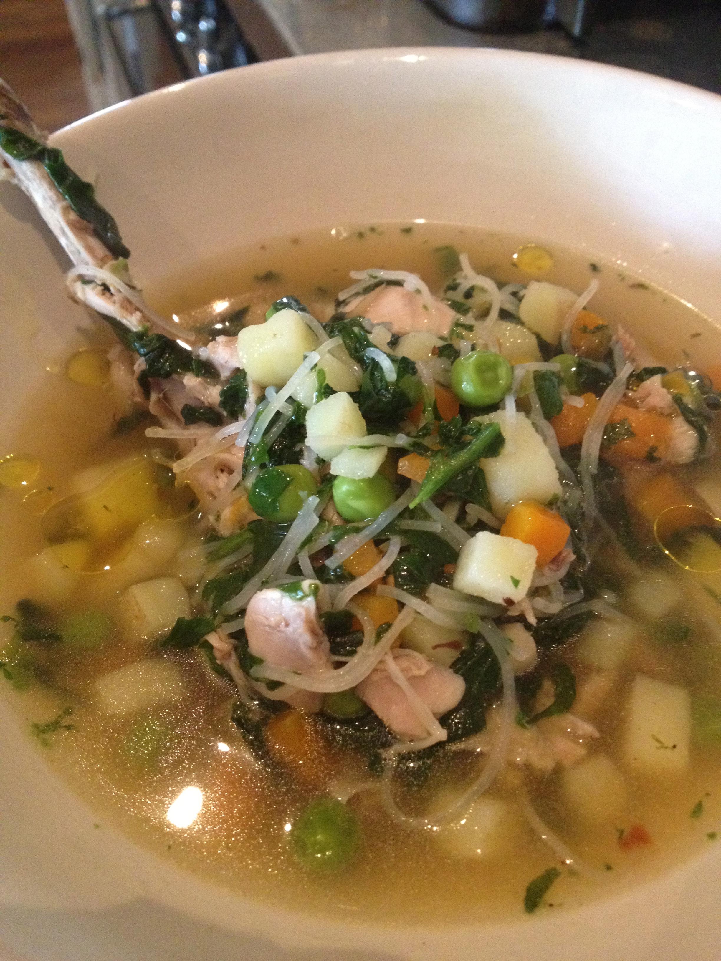 - Put everything except the noodles in pot, and simmer on a medium heat for 20-25 minutes, or until the chicken is cooked. You can check if the chicken is cooked by tearing it apart and, well, checking if it is cooked