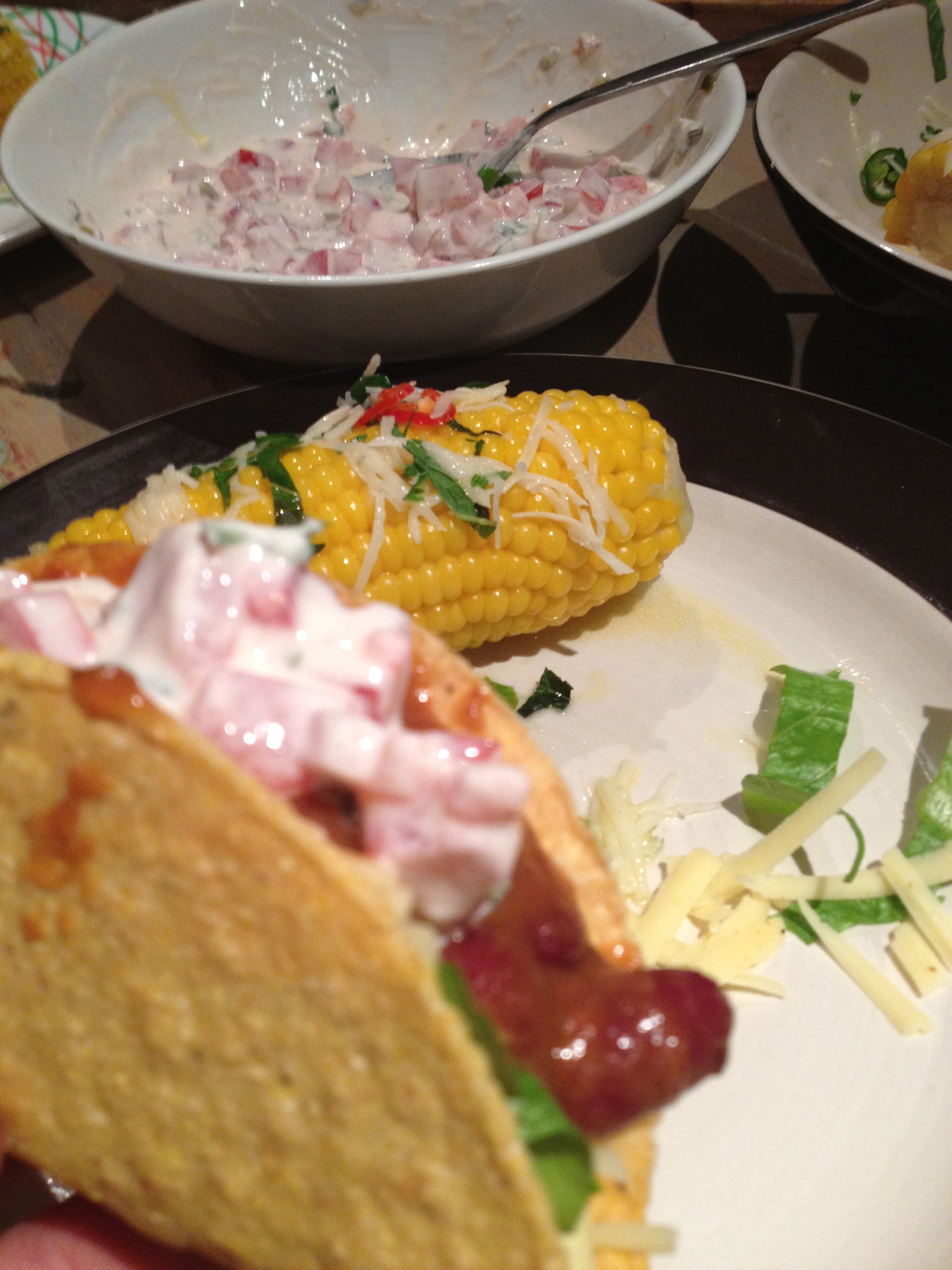 Yes, it’s Gringo-Mexicano Wednesday at our house again (well it was on Wednesday anyway). And today we make tacos, while our children husk corn and roll cigars in the back shed. Ole.