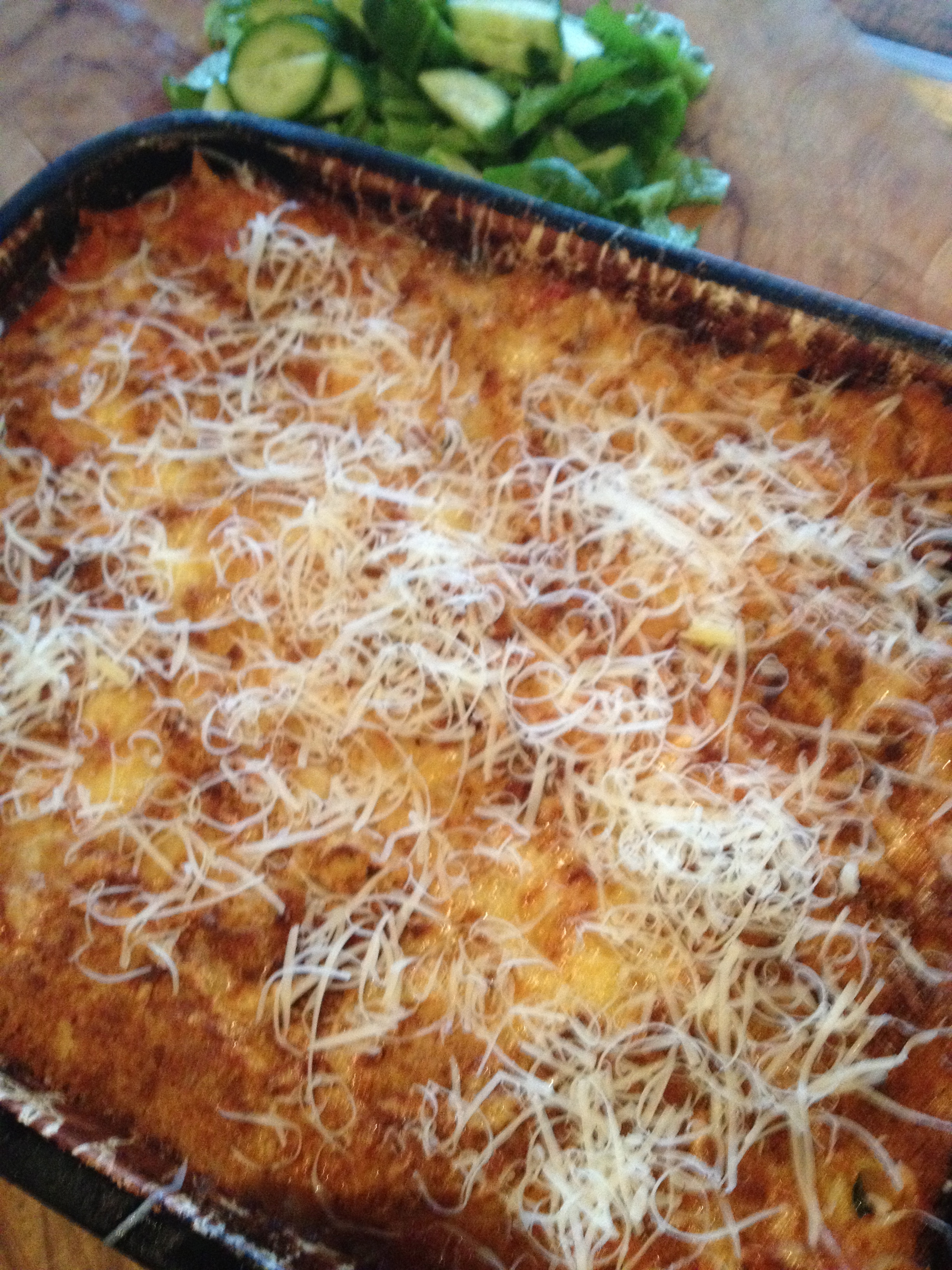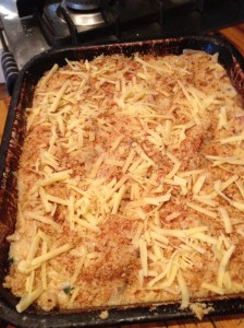 Well it’s an easy thing to make, and it has all of the elements that make something taste good; béchamel sauce, cheese, breadcrumbs and enough time in the oven to make it bubble and splutter like a gloriously tasty pan sized volcano (Or even a fat kid in the egg and spoon race at the school fete, eating the egg and spoon… too far?).
