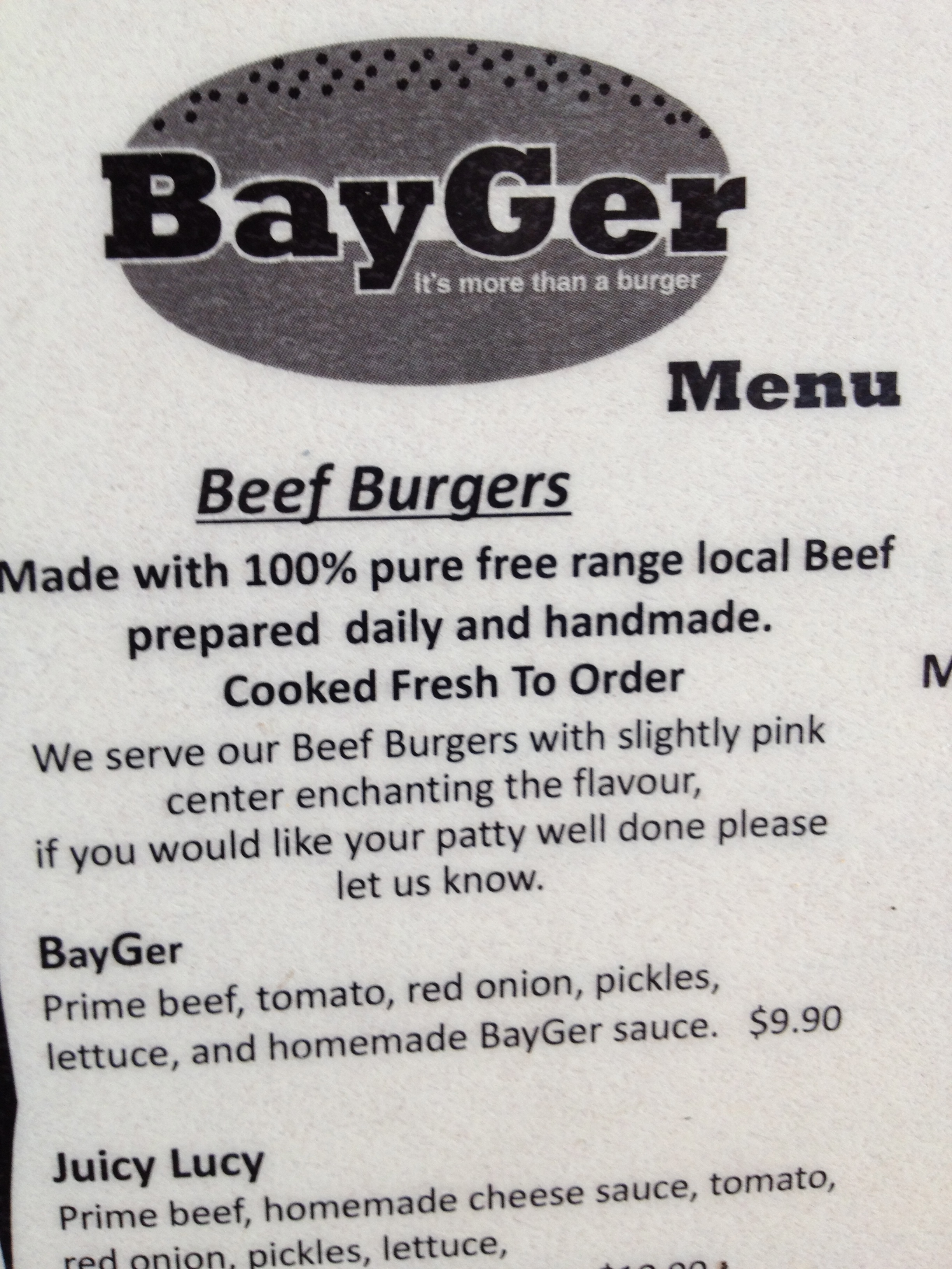 Bayger is another addition to the ever-growing family of new wave eateries modern society calls “the burger bar”. Local free-range meats, locally baked buns, gourmet salad and home made sauces. Effing awesome. I love this shit.