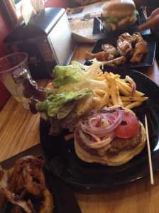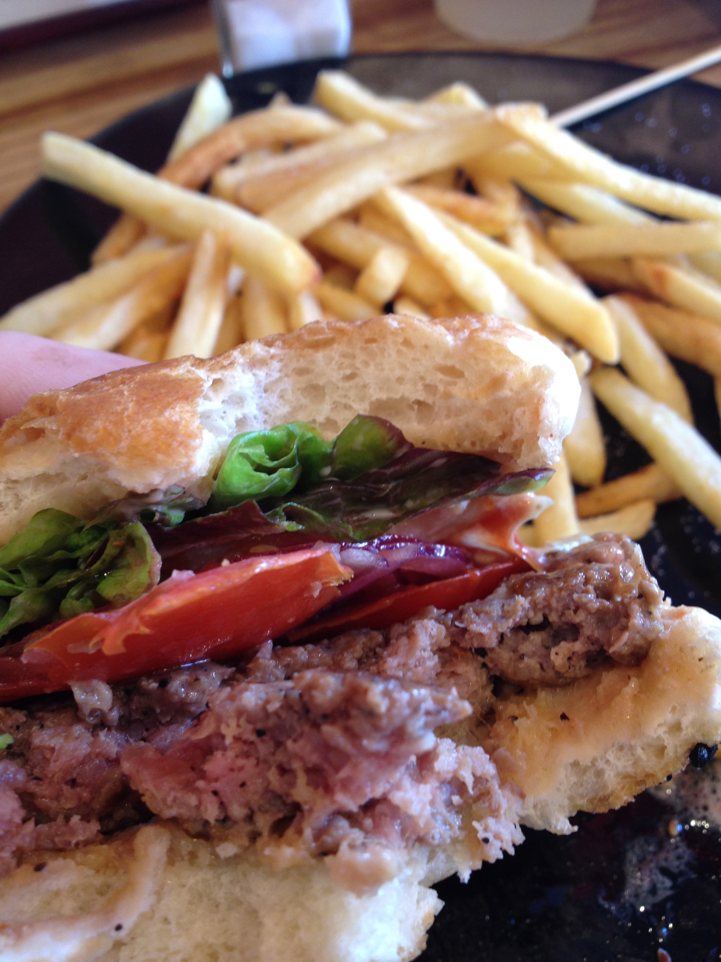 As soon as I looked at the menu though, I discovered a typo. I continued reading and discovered a few more typos. This annoys me on a menu. On a random assed food blog – that’s fine, but on a menu… People got spell check right? A big brother or sister? Something? (Just in case, I will recant my previous paragraph if I am informed that they are crazy hippies and intended to write “we serve our beef burgers with slightly pink center enchanting the flavour”. I didn’t notice the pink center enchanting the flavour while we were there, but that’s not to say it wasn’t going on…)