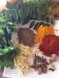 1 heaped tablespoon each ground cumin, tumeric, paprika, chopped garlic, julienne ginger