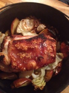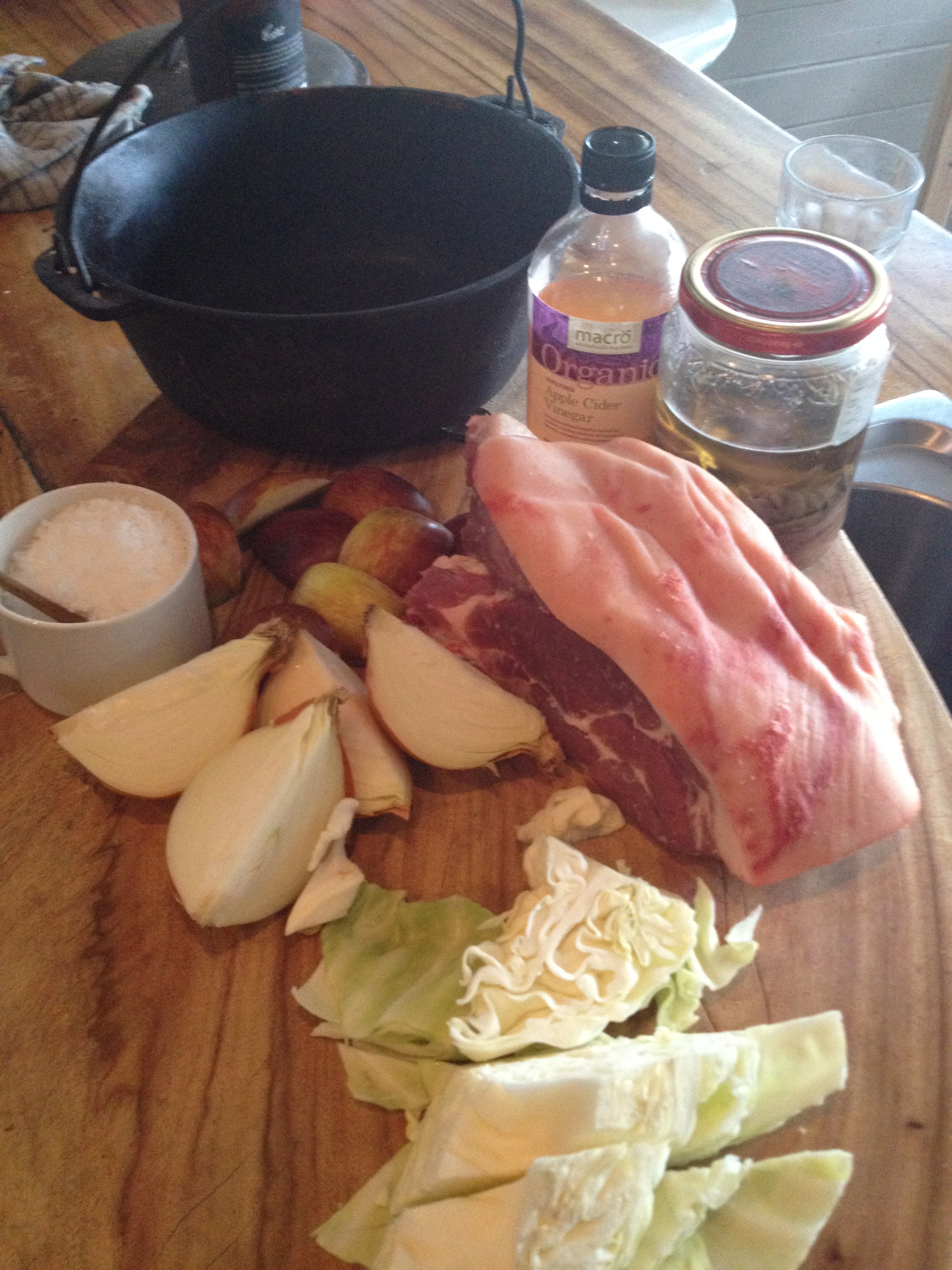 Riveting conversation aside, I offered them a choice for the evening meal. I had a pork shoulder roast, a leg of lamb and a kilo and a half piece of rump steak… all looked good but I was pushing them towards the lamb. I really felt like lamb roasted over the coals. But as Jesus once said, you can lead a horse to water but you can’t make it drink. So pork it was. We also pulled out some cabbage, onions, apples, apple cider vinegar and anchovies. We can’t eat without anchovies at the moment. Not literally of course. I can eat just fine without an anchovy there to tell me to chew my food before I swallow so I don’t choke and die. I can also clean my own bottom when I go to the toilet. Oh, how far I’ve come!