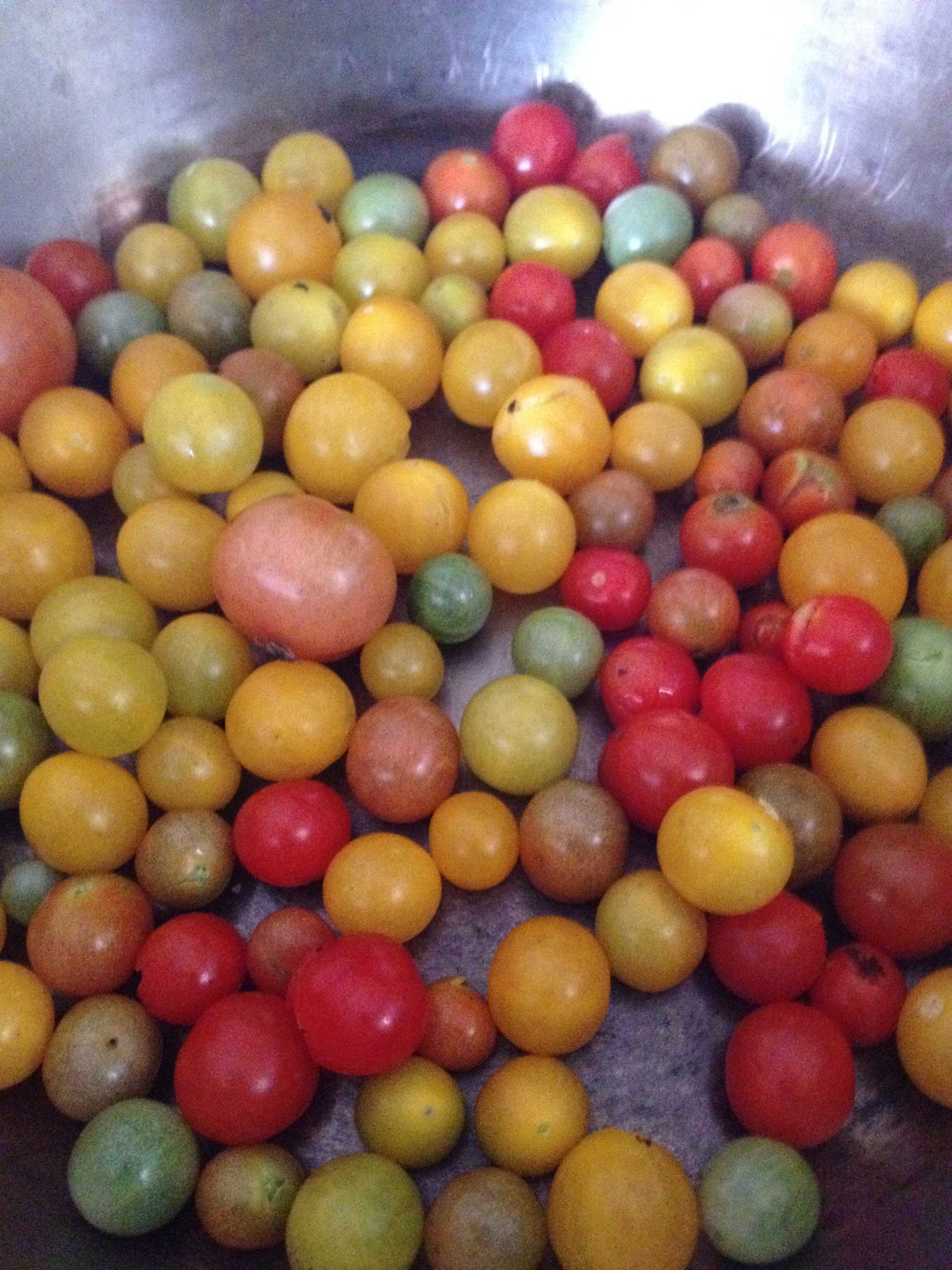 FRIED CAULIFLOWER, CHERRY TOMATOES (we have half a garden full of them right now), ONIONS AND CAPERS