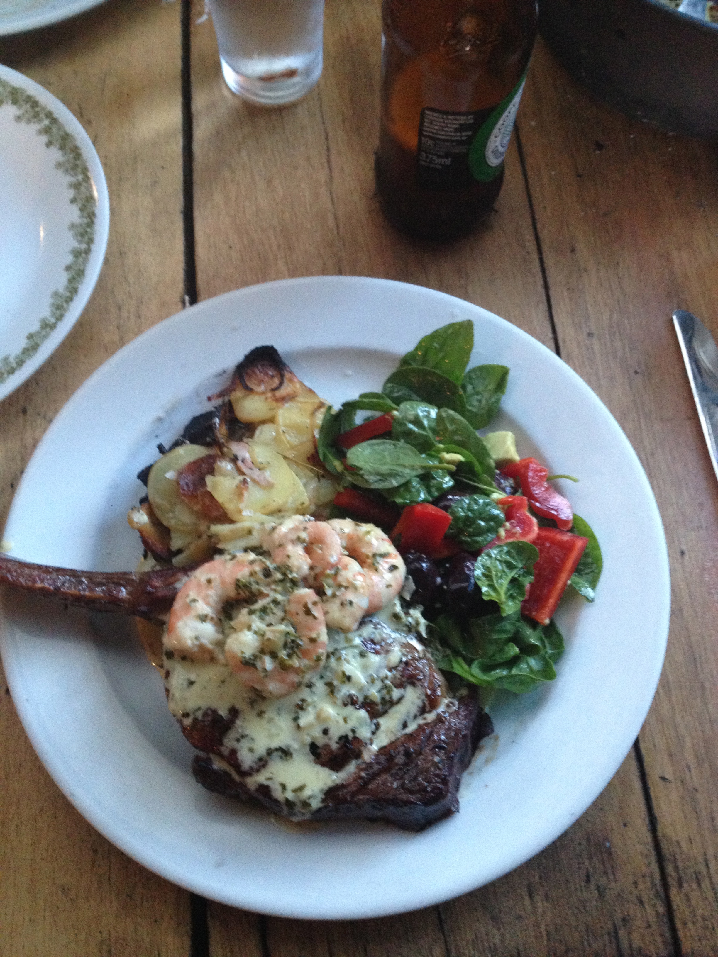 In the late 80s there was nay a pub nor club in all the lands that would not have it on their menu. Usually reading something like this, “char grilled rib eye steak cooked to your liking and drizzled with garlic prawns in a rich garlic and white wine cream sauce. Resting atop a bed of fluffy mashed potato, with a side salad consisting of tomato, cucumber, red onion, carrot, lettuce and snow pea sprouts, and finished with fresh, virginal unicorn horn shavings…” Over explained as with everything else on their menu, but as popular as a Thai lady boy on a GI army base. There were a few regional variations; maybe bug tails if you lived north of Brisbane, or dirty old frozen marinara mix from Woolworths if you were lucky enough to live enough to live inland next to a dodgy roadhouse.