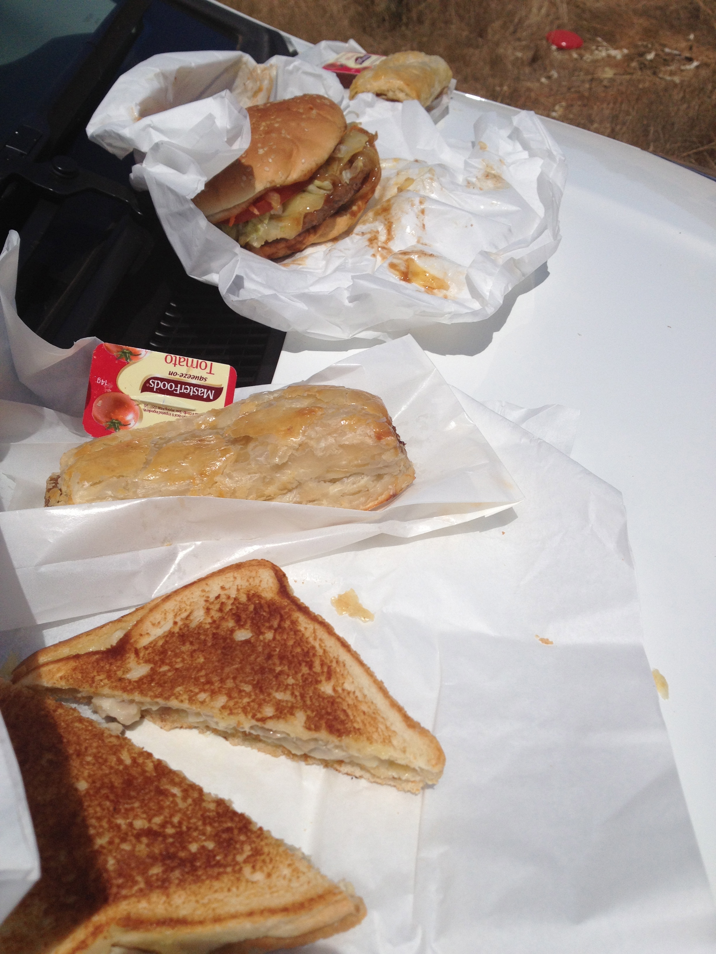 Today I decided to live life a little closer to the edge (or increase my chances of spending the night on the edge of the toilet bowl), so I also ordered the chicken, cheese and mayonnaise toasted sandwich. The chicken could’ve come from any animal except, I think, a chicken. Excellent. Seba opted for the burger and Obi a sausage roll. Both were homemade and surprisingly quite good.