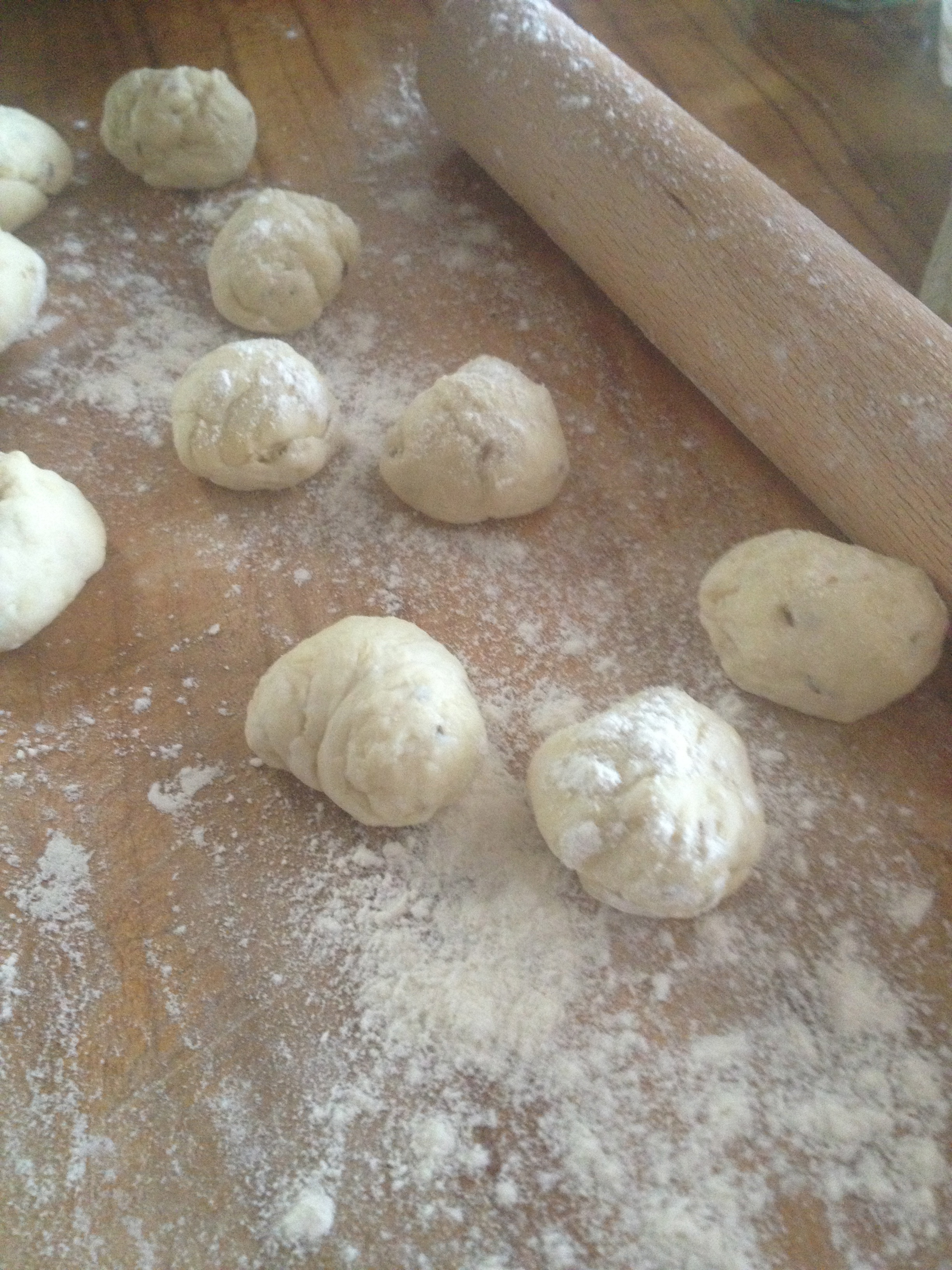 • mix flour mix salt, cumin seed and add oil. Slowly add water and mix to a firm-ish dough (I guess it would be the consistency of a taught ass)