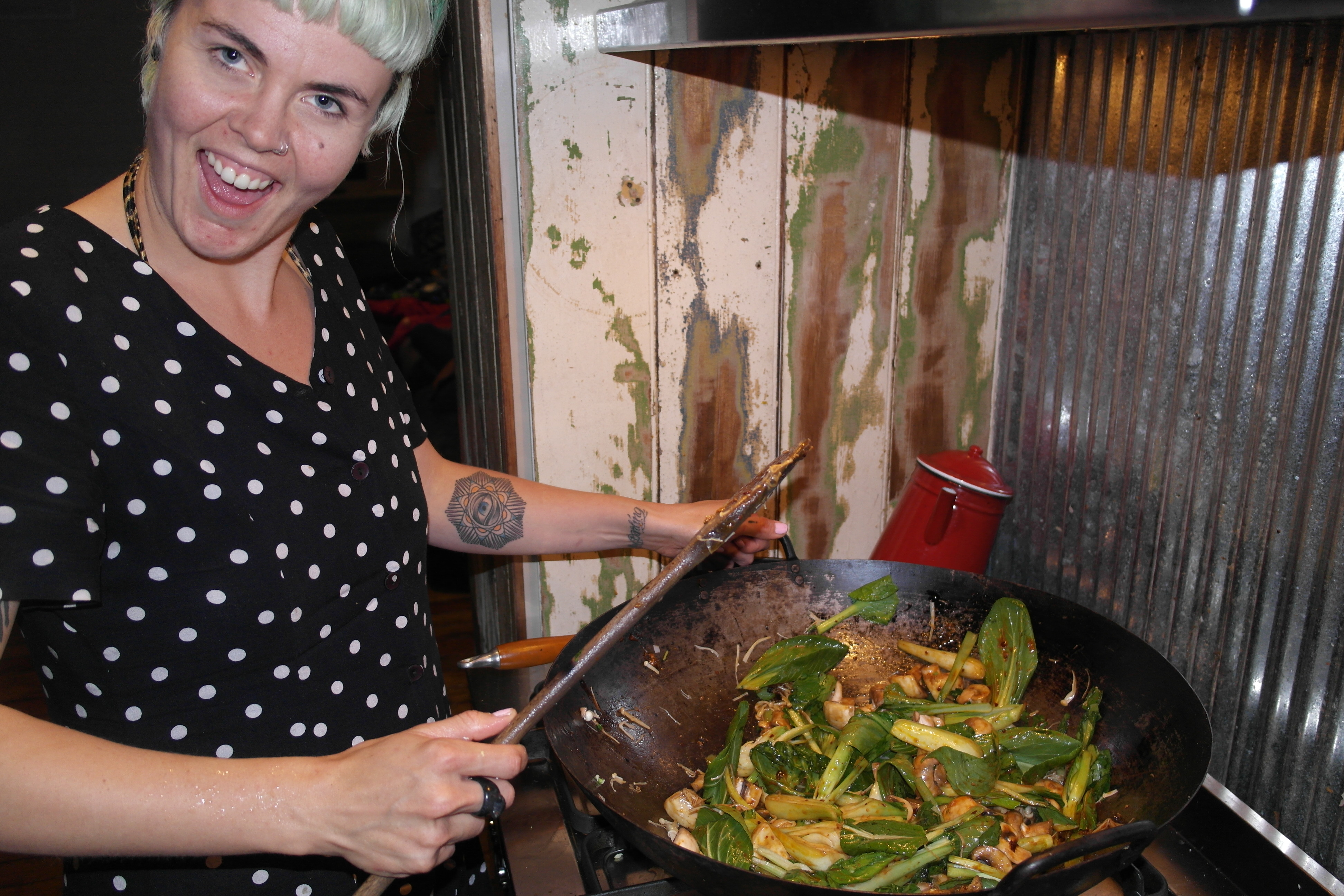 - I would suggest getting some mushrooms and bok choi, maybe a bit of choi sum, and stir frying them with your favourite Asian condiments. Two of my favourite Asian condiments are chilli in soy bean oil and yellow bean paste… and they were definitely both in my chilli stir fry. A little oyster sauce, soy sauce and fish sauce, and Bobby is your favourite Thai uncle