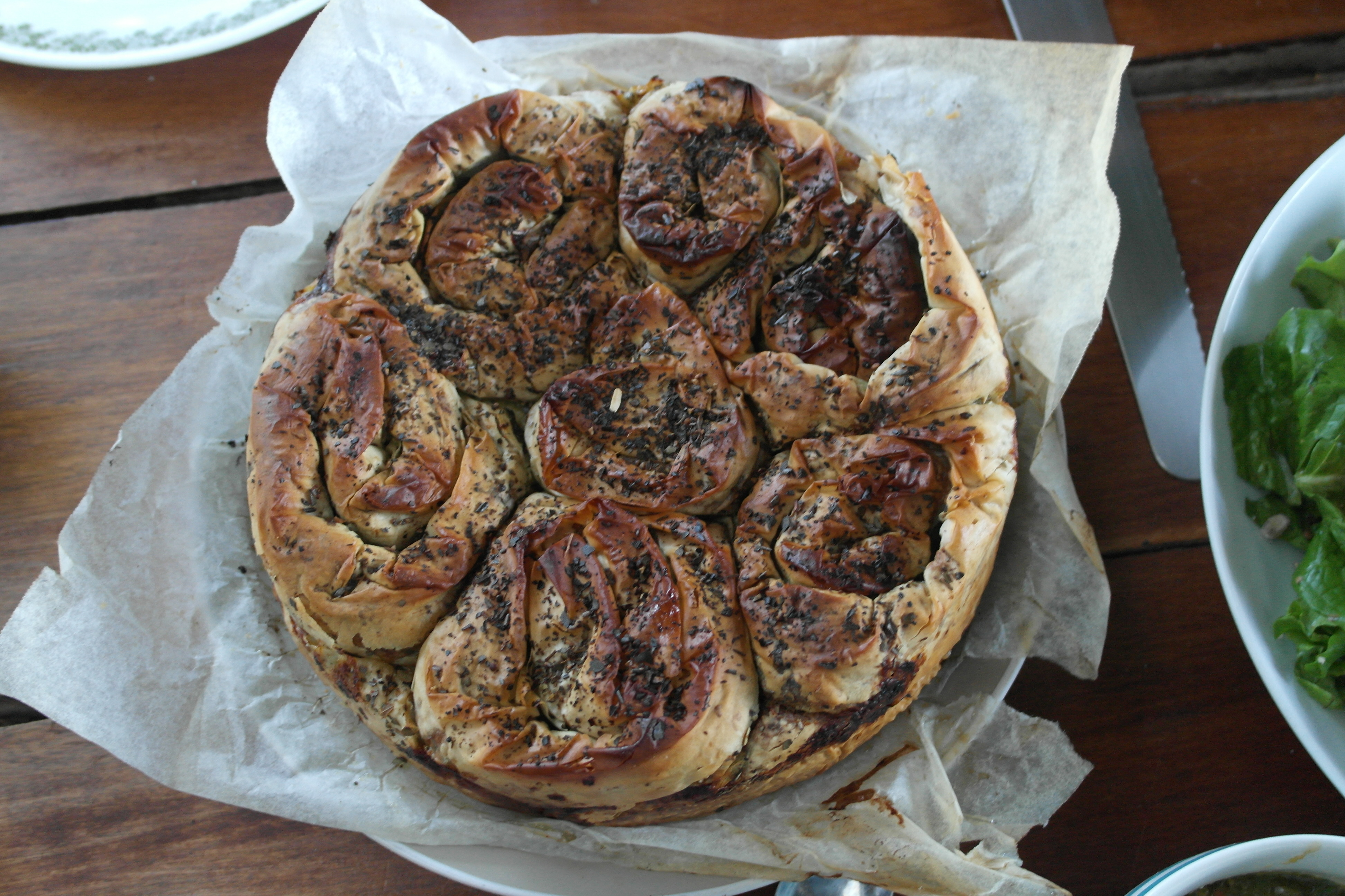 Have to say that it looks pretty damn good! My mum would die before she used pecorino or filo pastry – she still makes her own pastry but I like it – extra points for the grated nutmeg and the combination of ricotta and feta – triple extra points for using chooky eggs and not human eggs – I would eat all of that and not share it with anyone – good stuff! 🙂