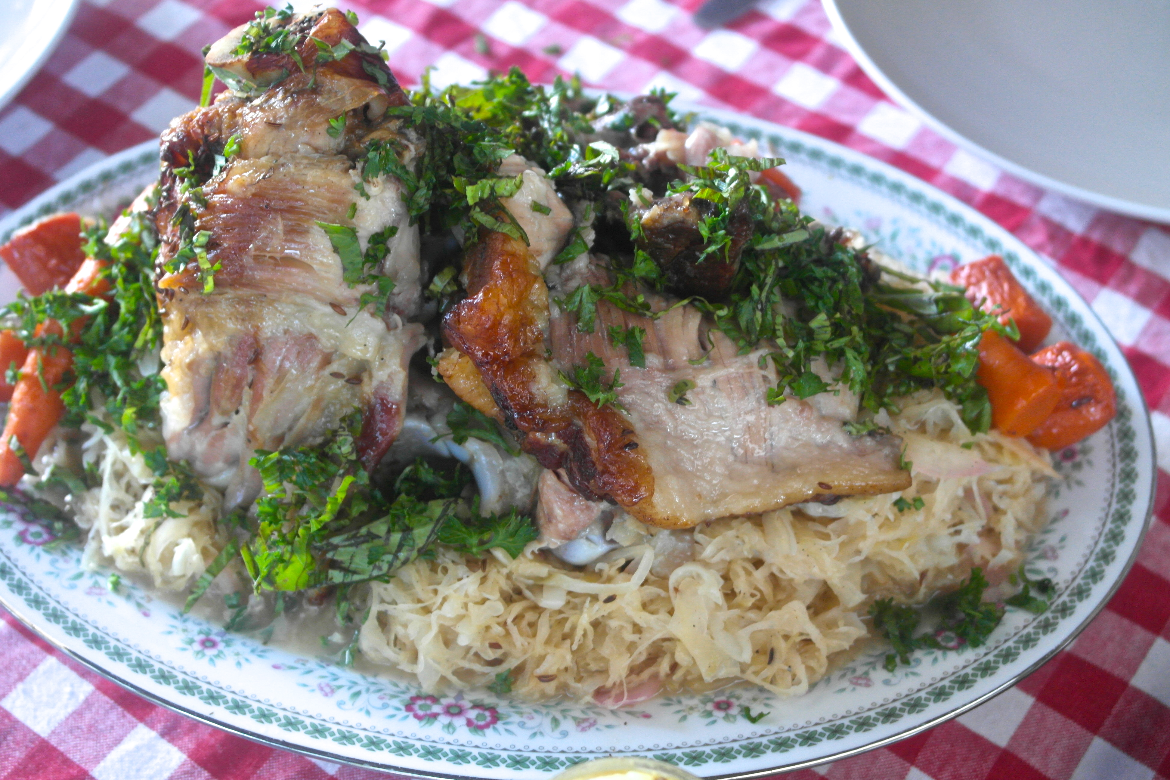 18 responses to “Pork knuckle with sauerkraut and hasselback fondant potatoes”