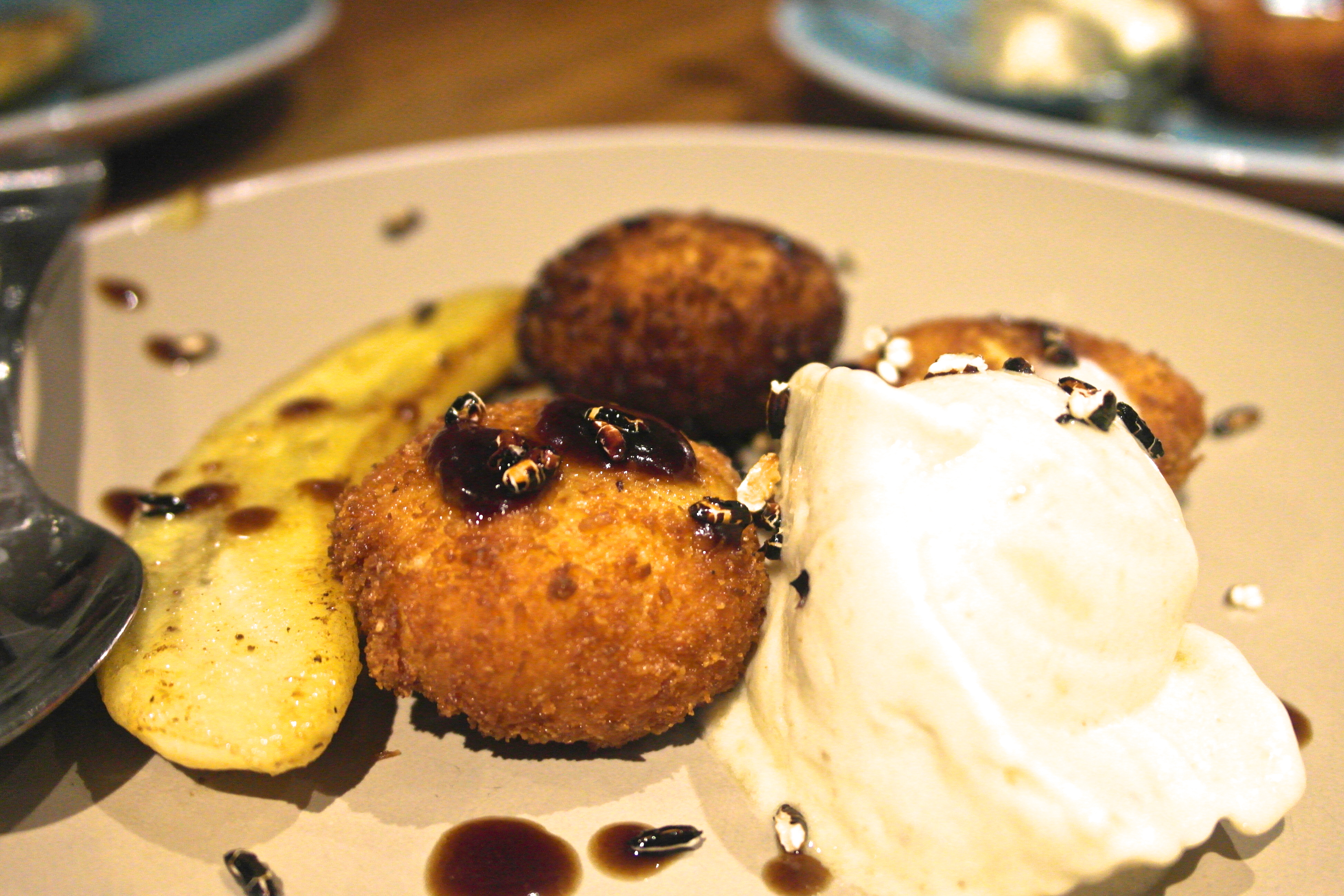 Papua New Guinea and new age take on some local flavours with fried coconut custard, banana ice cream, popped black rice and tamarind caramel