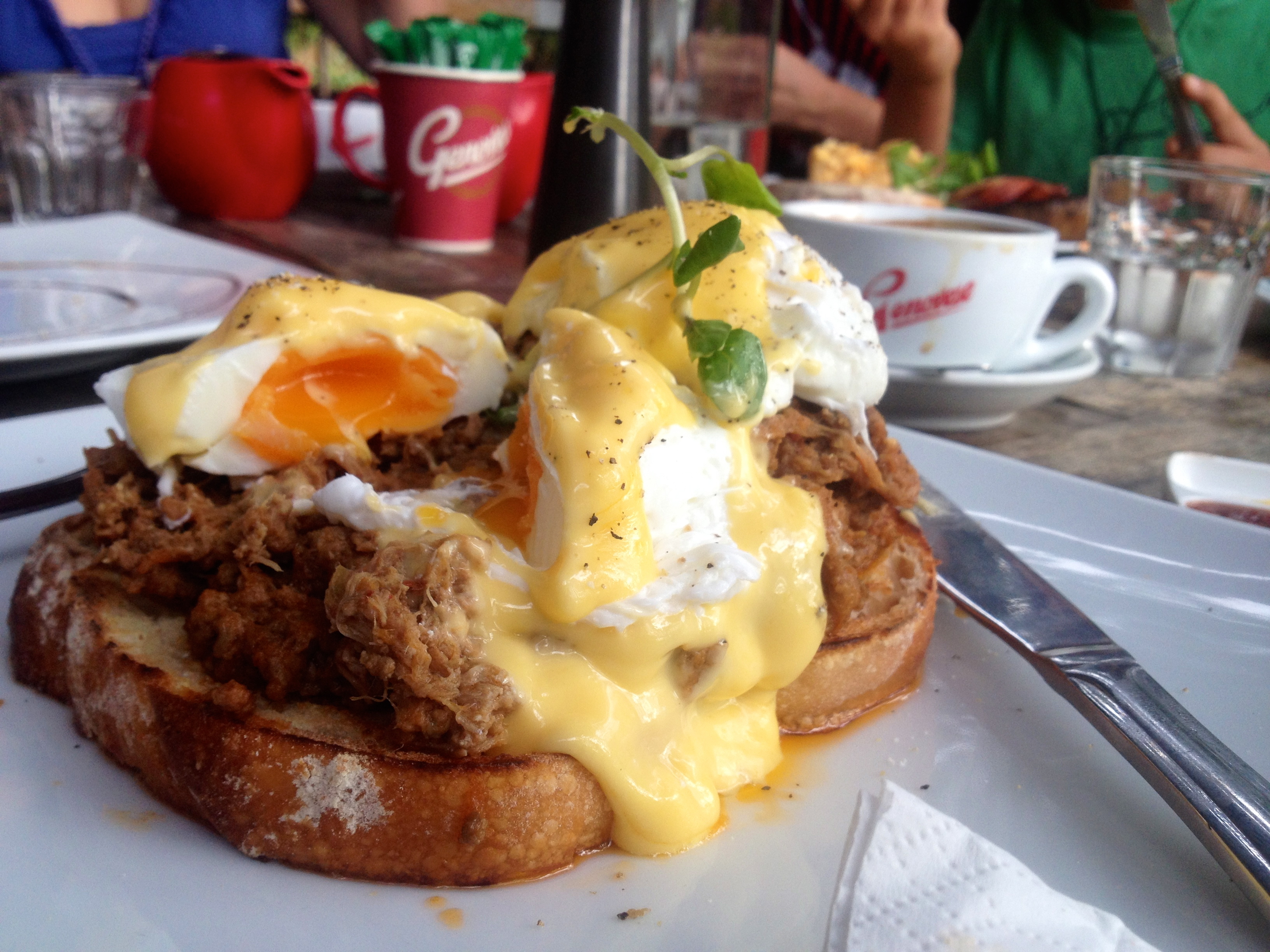 3. Oh my gosh, that bushman’s breaky looks incredible. Cannot believe they give you BOTH pulled pork and savoury mince (with runny eggs, big yay right there). Aaron would cry tears of joy if he saw that on a menu. As for Jennee’s choice? My absolute favourite breakfast with the exception of the tomato chutney (I’d probably give that right on over to Seba and his mighty appetite… and ask for feta and some chive or lemon oil).