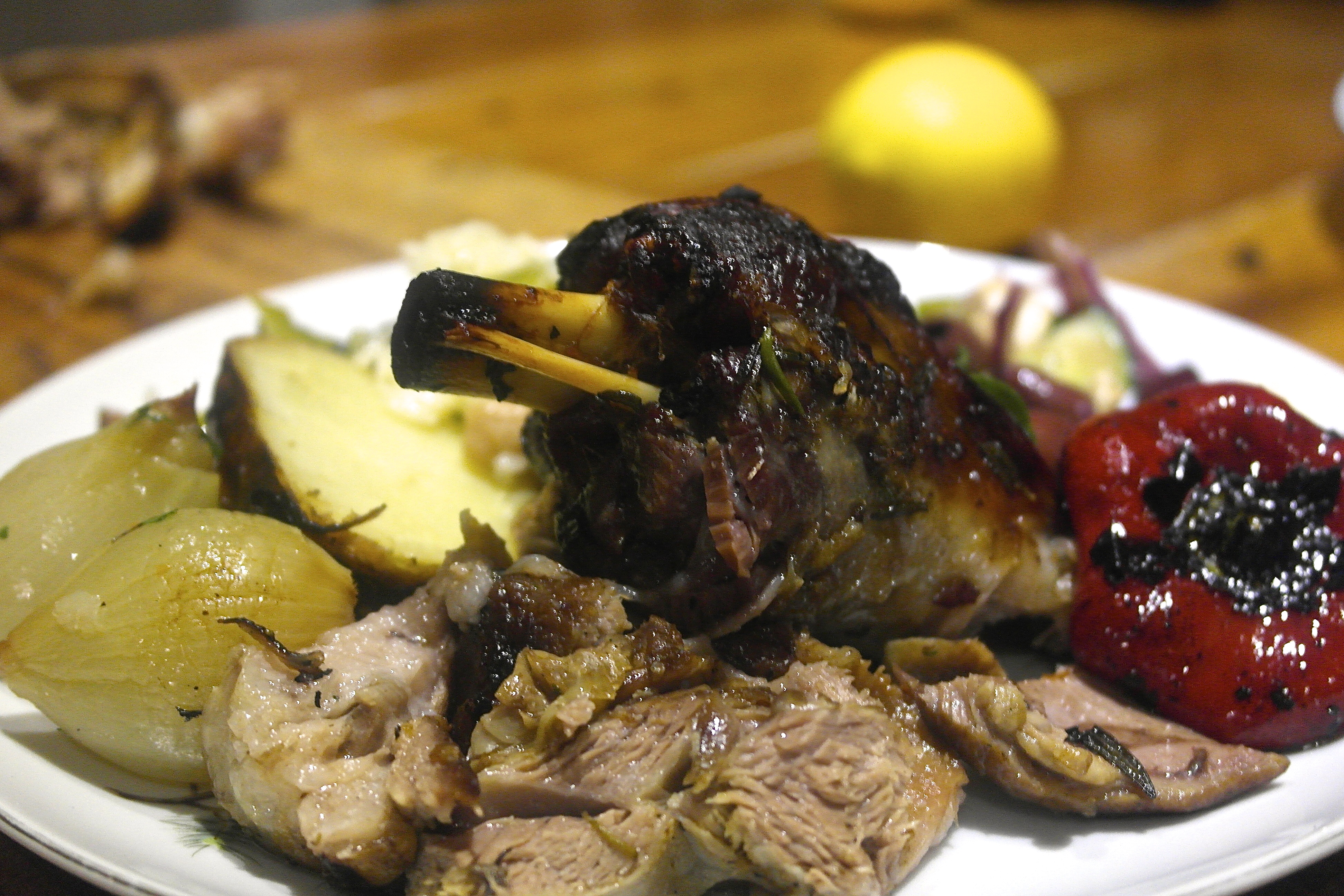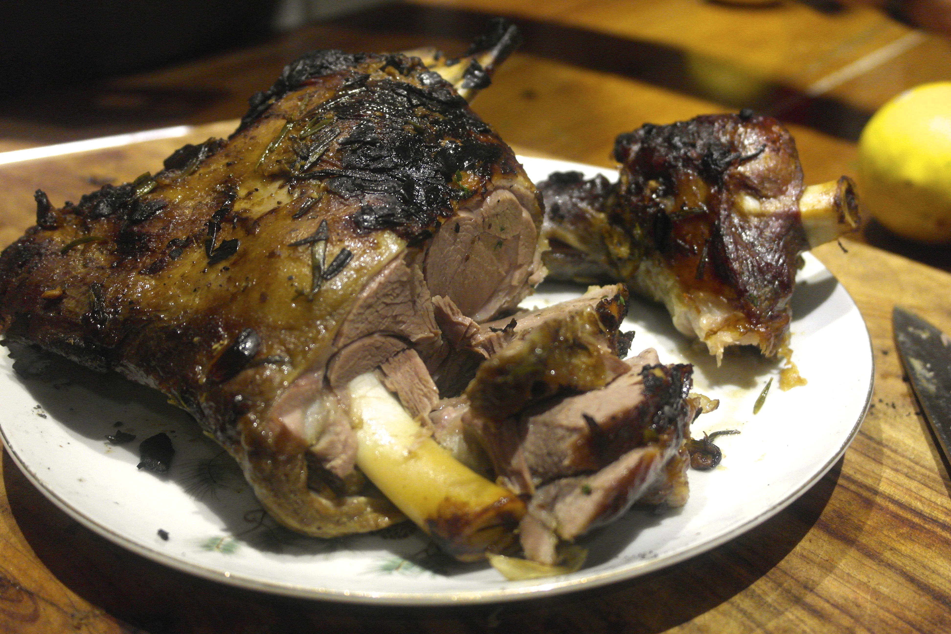 Lamby rubbed down with garlic, anchovies, preserved lemon and rosemary followed by three hours in the coals of the fire