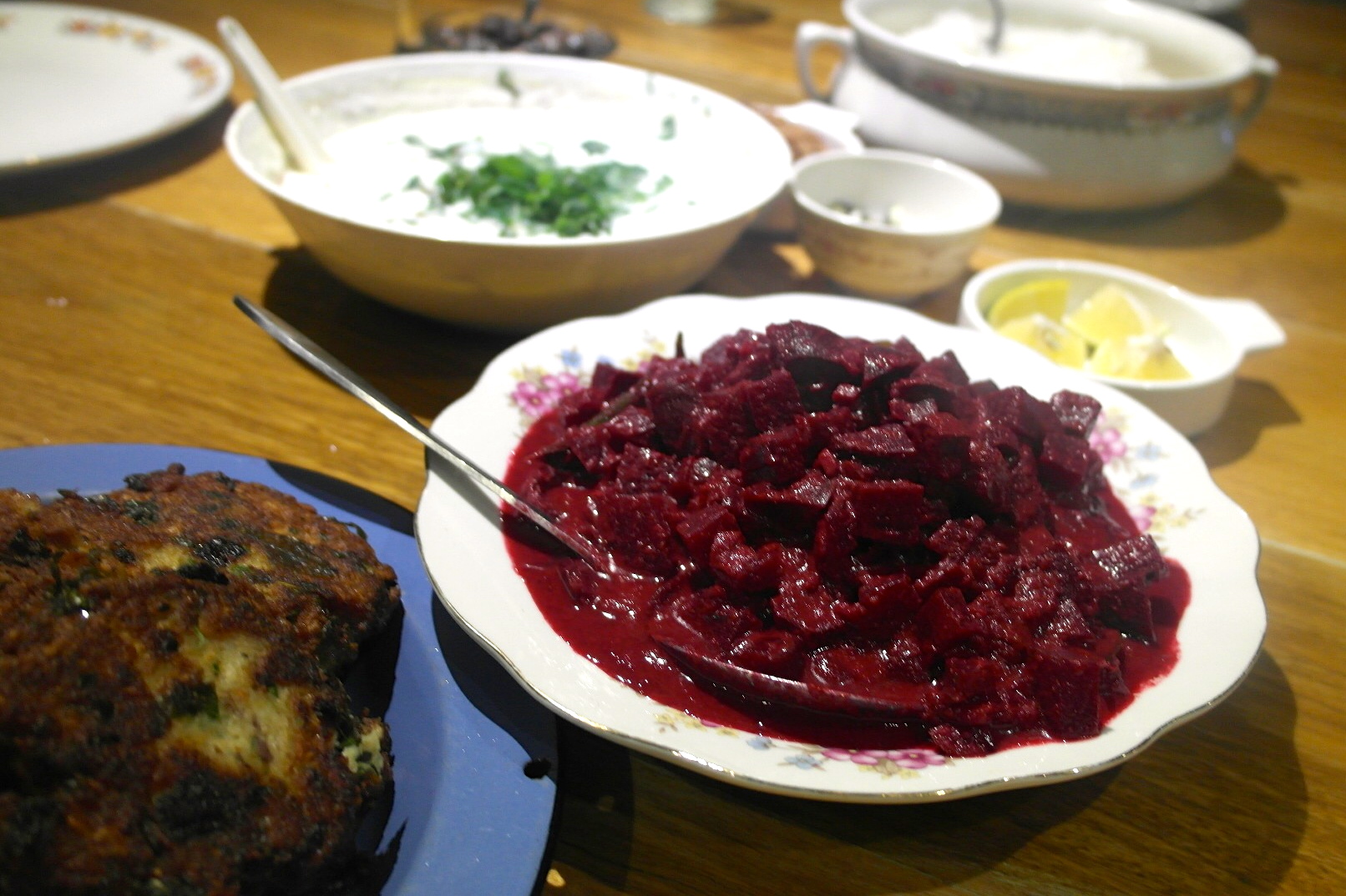 I never would’ve thought of putting beetroot in curry. NEVER. And I do read a bit of Peter Kuravita’s blog… obviously not enough! Glad that Jennee was feeling much better this weekend; she put up another seriously glorious feast! Love the sound of the potato cakes (oh my gosh, poached eggs and chutney? Yum).