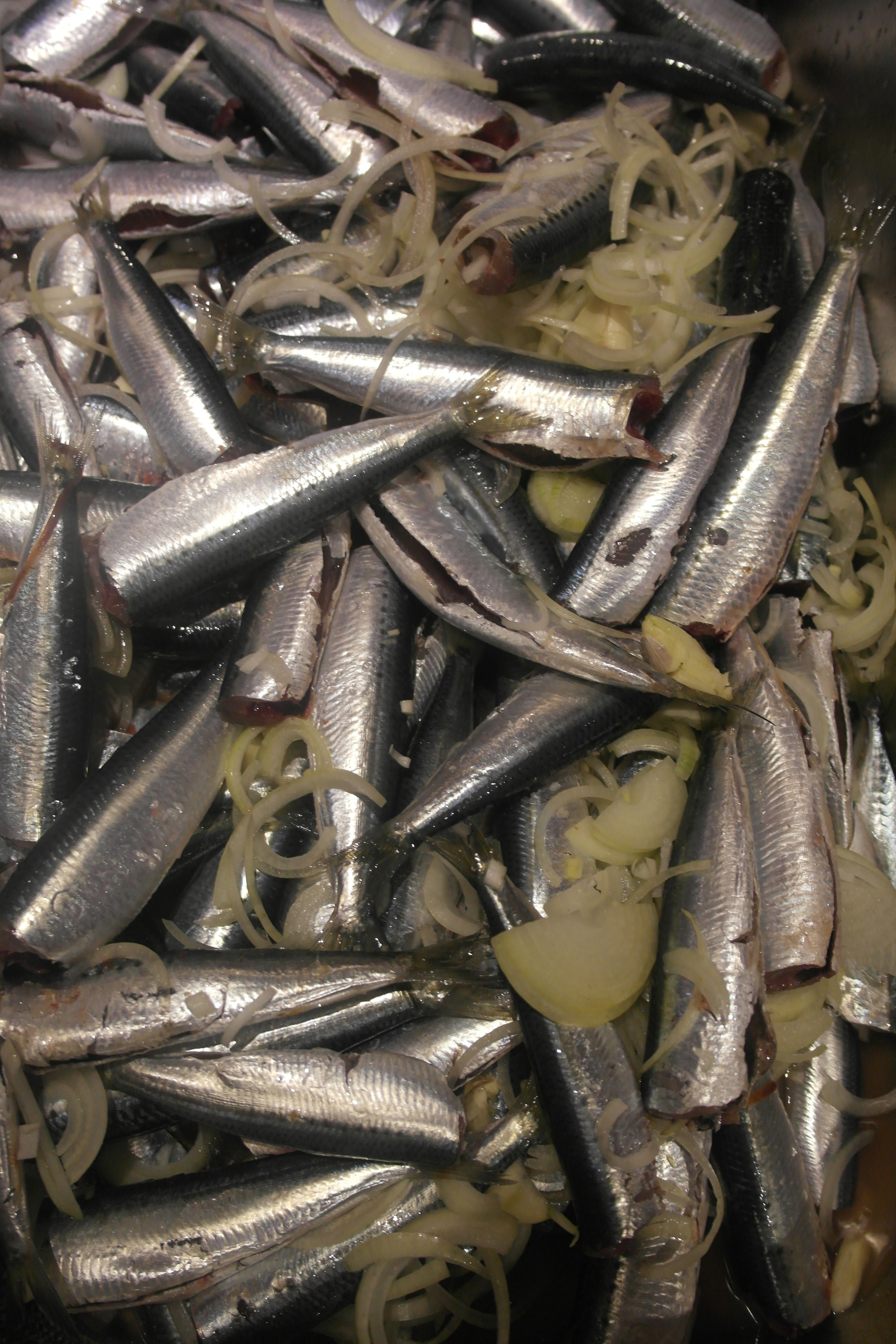 ⒠Gently toss the sardines with the vinegar, onion, garlic and salt. The vinegar and salt will start to cook the fish and firm it up a little⦠the onion and garlic are there for their awesome flavour. Marinate sardines for 1 hour, tossing gently every 20 minutes