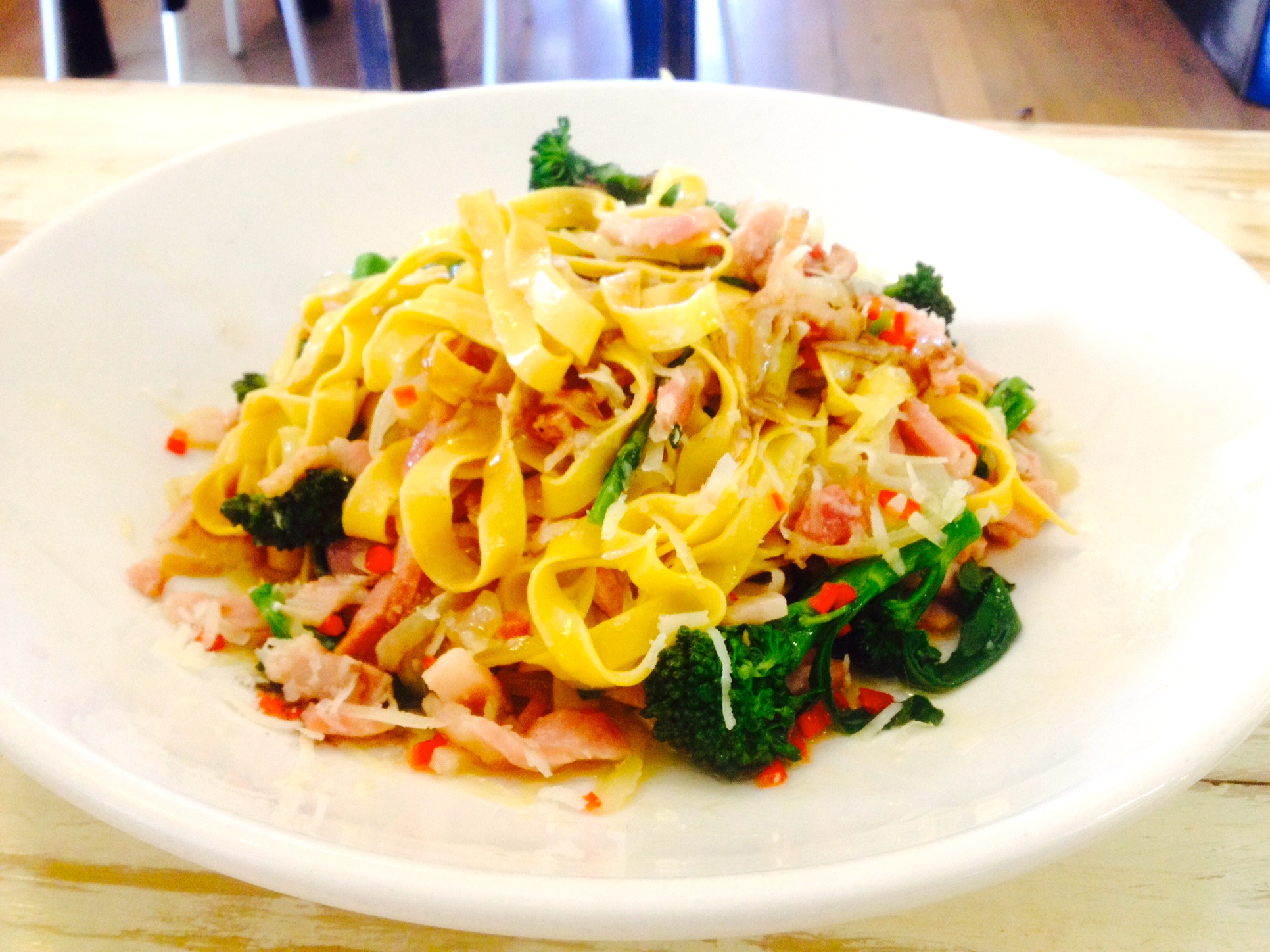 One of my favourite combos two ways; Bacon, baby broccoli, anchovy and chilli pizza or pasta… you choose.