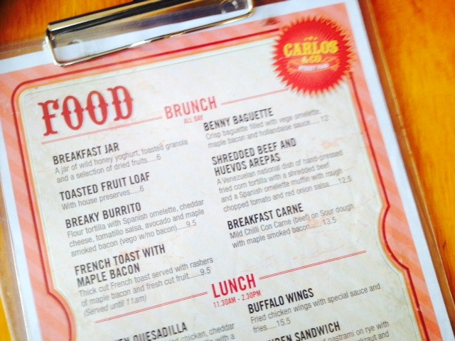 We ventured into the hip little joint and I ordered a coffee. A long black  be precise. The first was a blend, followed by another, followed by a single origin number at the request of the barista, each as marvelous as the last. Perfectly poured Peak coffee tickled the back of my throat with a hint of chocolatey goodness and just enough coffee kick with out being bitter or burnt. Carlos and Co. was so close to getting 10/10 in the start-to-the-day stakes, but I thought it inappropriate to ask for the reach around needed to achieve this perfect score… and besides, we hadn’t even received our food yet…