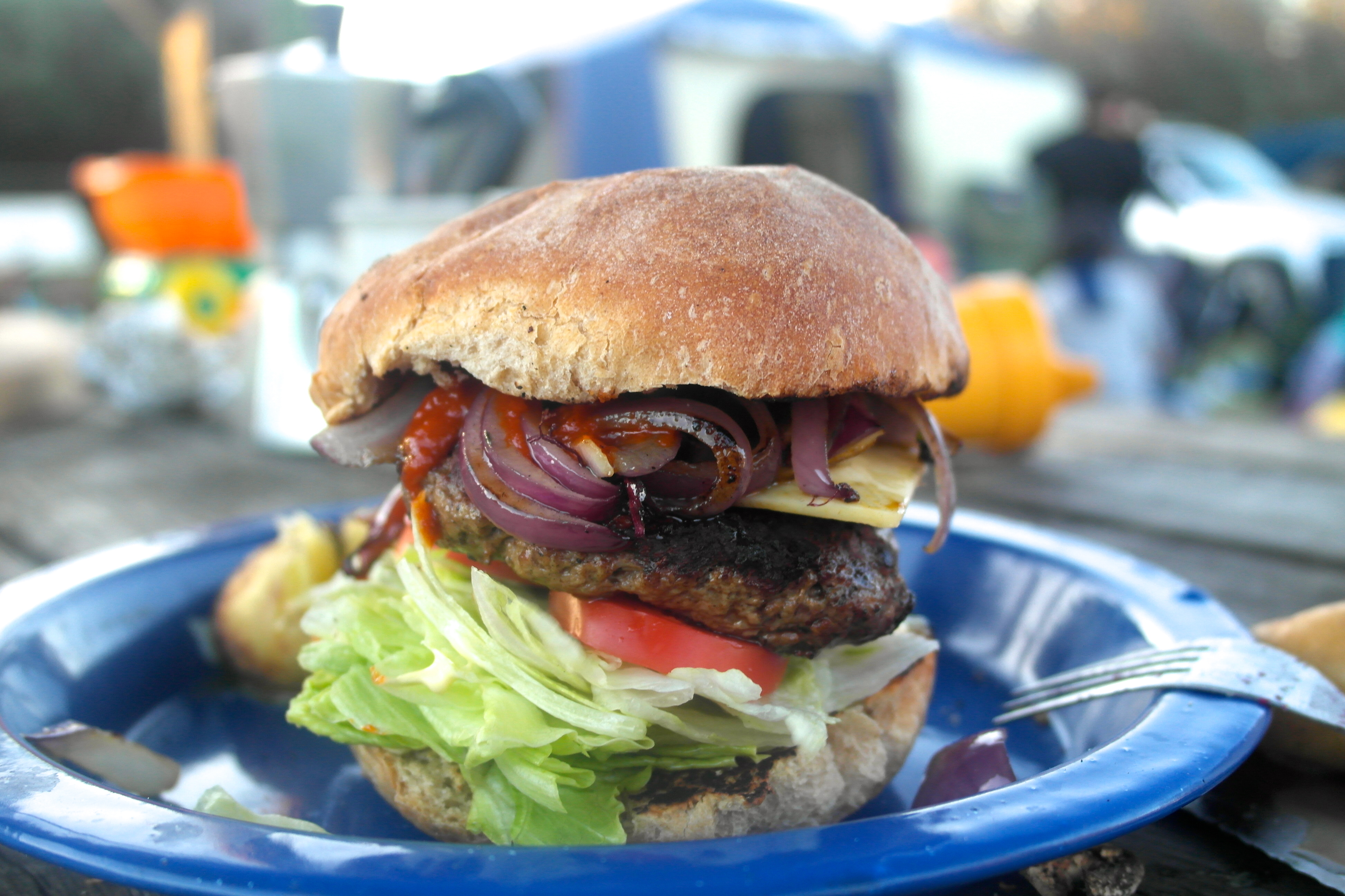3. My last camping experience involved a crazy man with only 6 fingers, cops and a lot of booze, oh and of course bacon and eggs… I like your camping style so much better. That burger belongs in my belly! please send one asap.