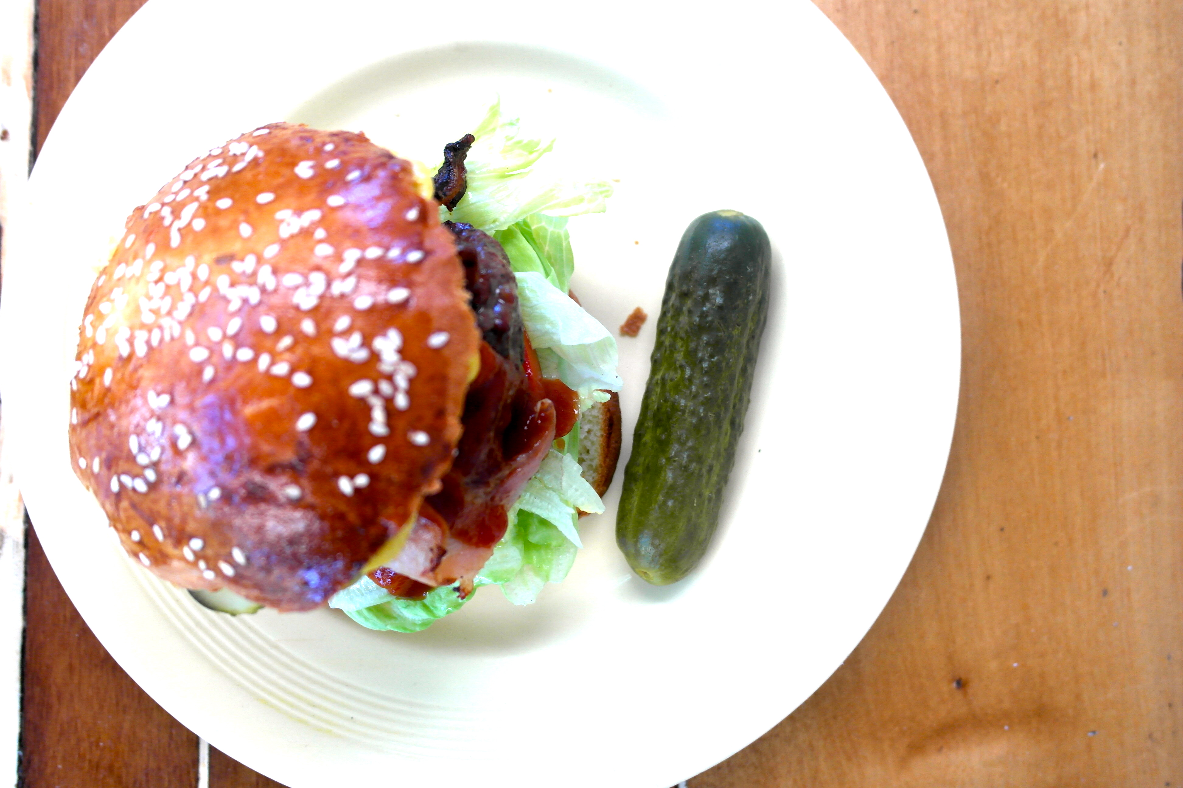 It looks like my burger is trying to eat the pickle. It’s not though, because it is a burger
