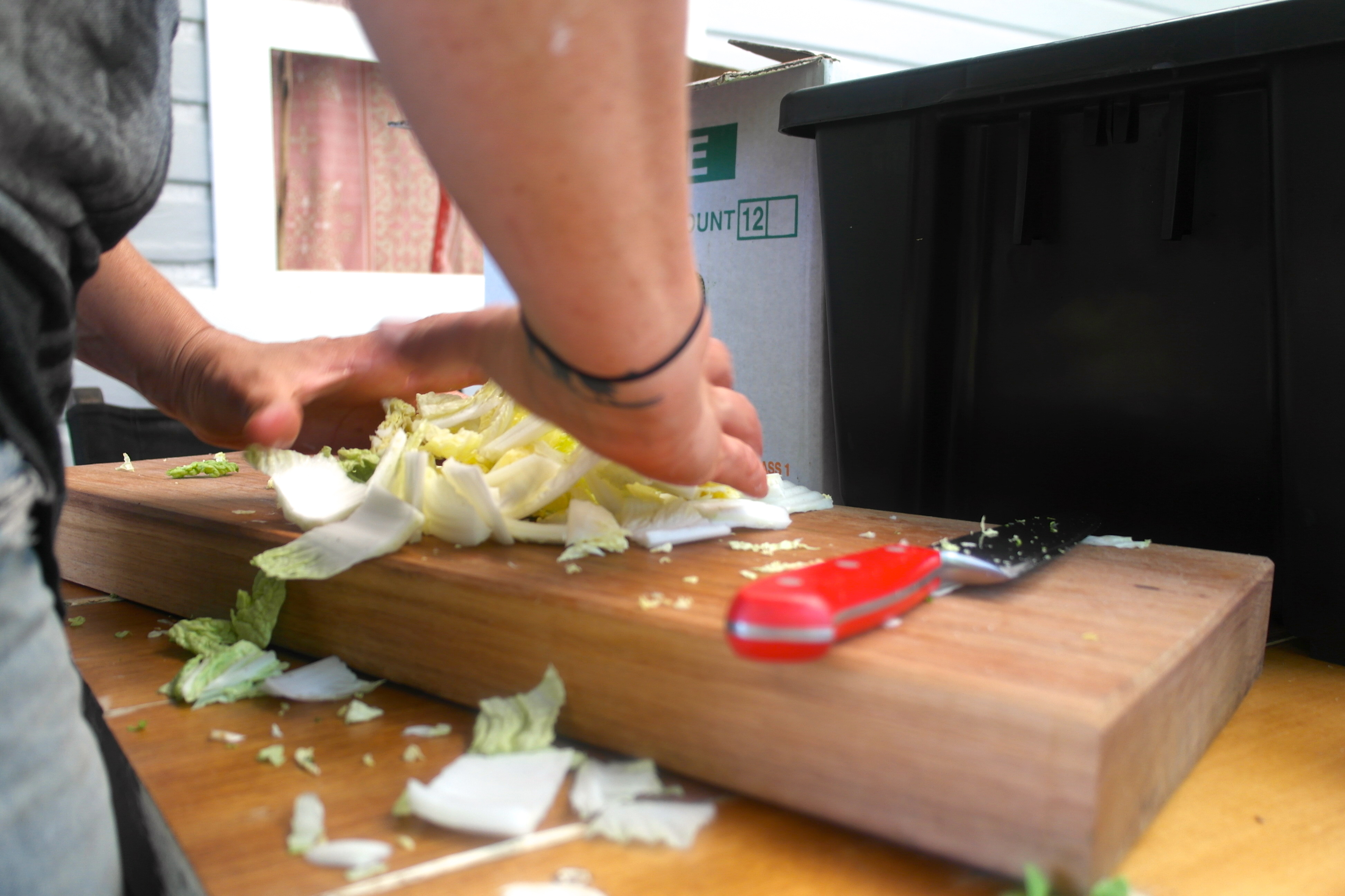 • Spread mix over cabbage and return to clean tub. Seal and store on the bench for 2 days until starting to ferment. It will start to bubble a little bit and the smell will intensify.