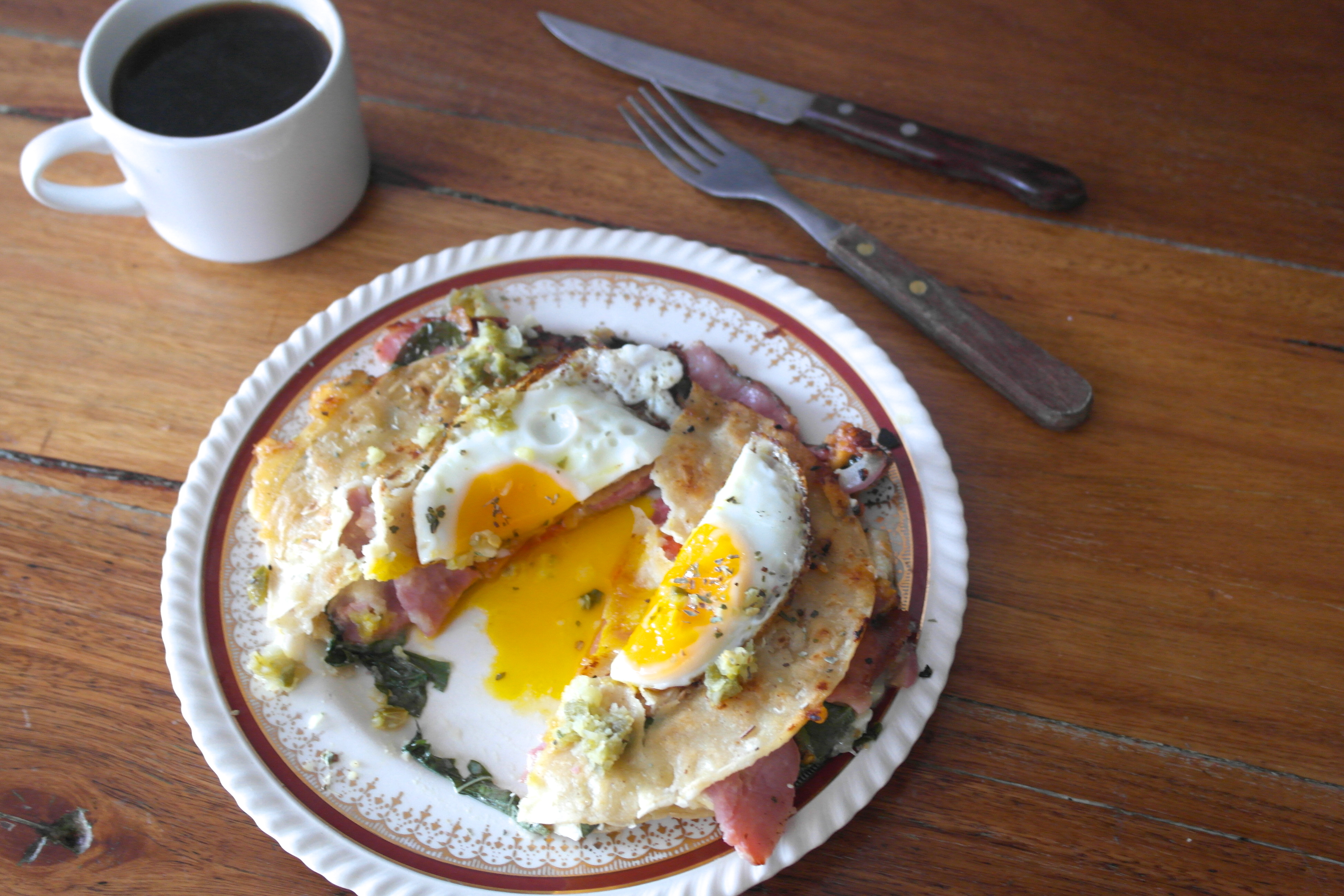 • When quesadilla is done top with a fried egg and jalapeño relish if you’re keen