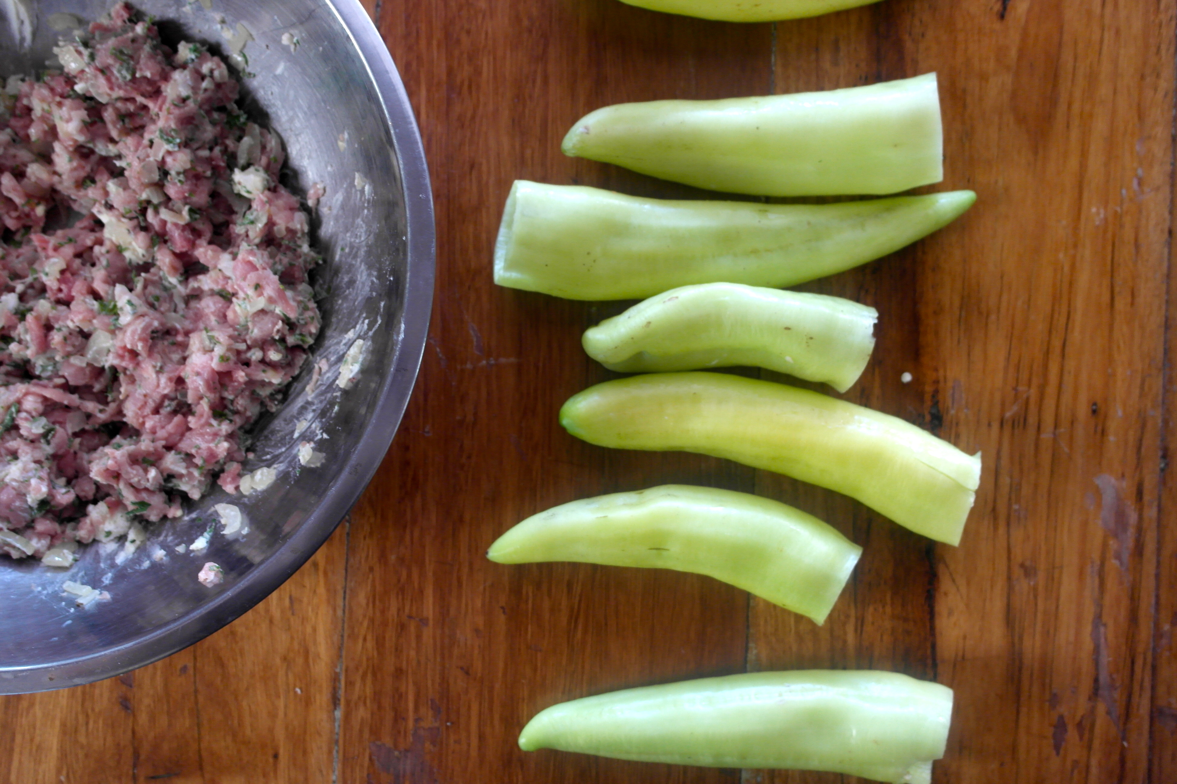 BANANA PEPPERS STUFFED WITH PORK & CHEVRE (serves 4)
