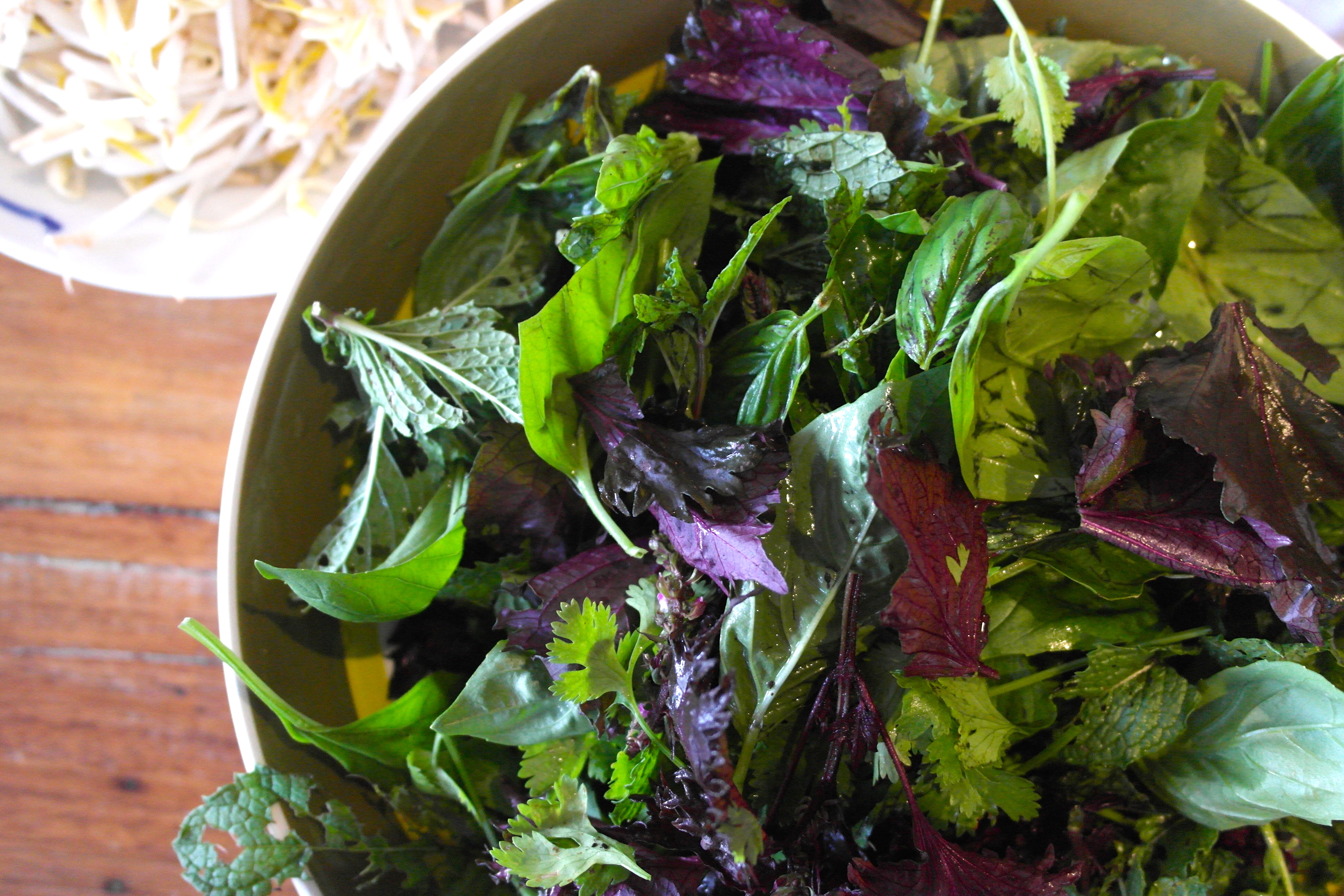 A large pile of picked fresh herbs (I used mint, basil, coriander and purple shiso)