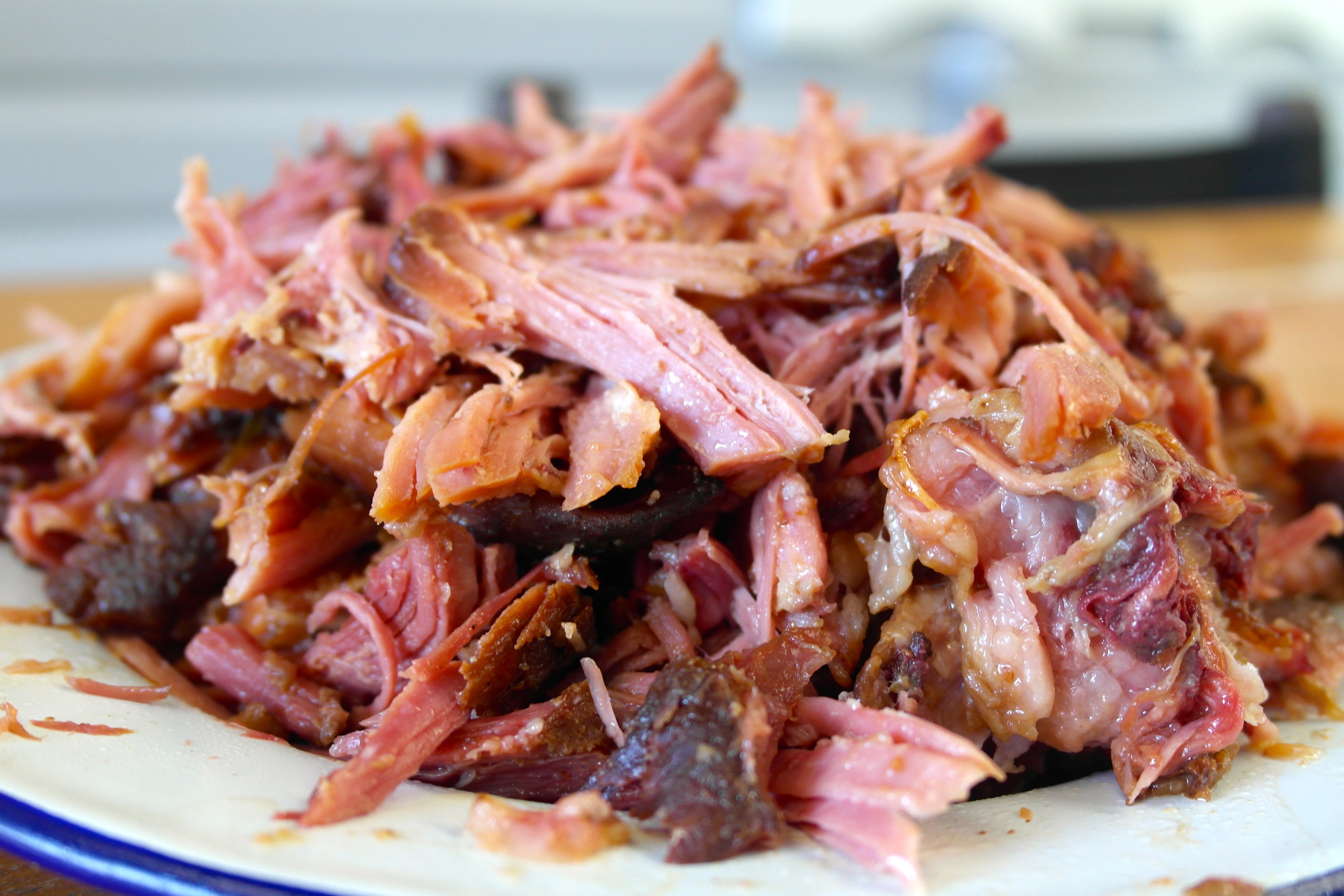 • Let it cool a little, but while it is still warm shred the meat up with two forks, or a fork and some tongs, or your fingers if you really want me to love you