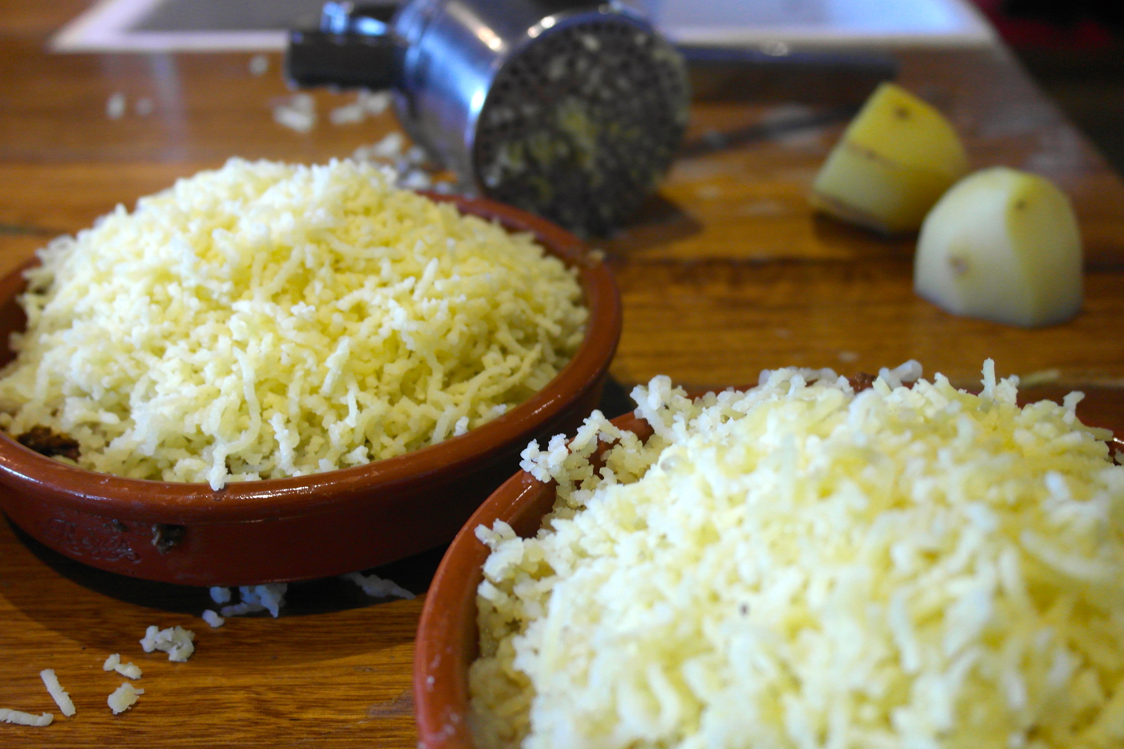 Goes into some dishes and then steamed potatoes are pushed through the ricer to make a funny pattern that the kids like on top...