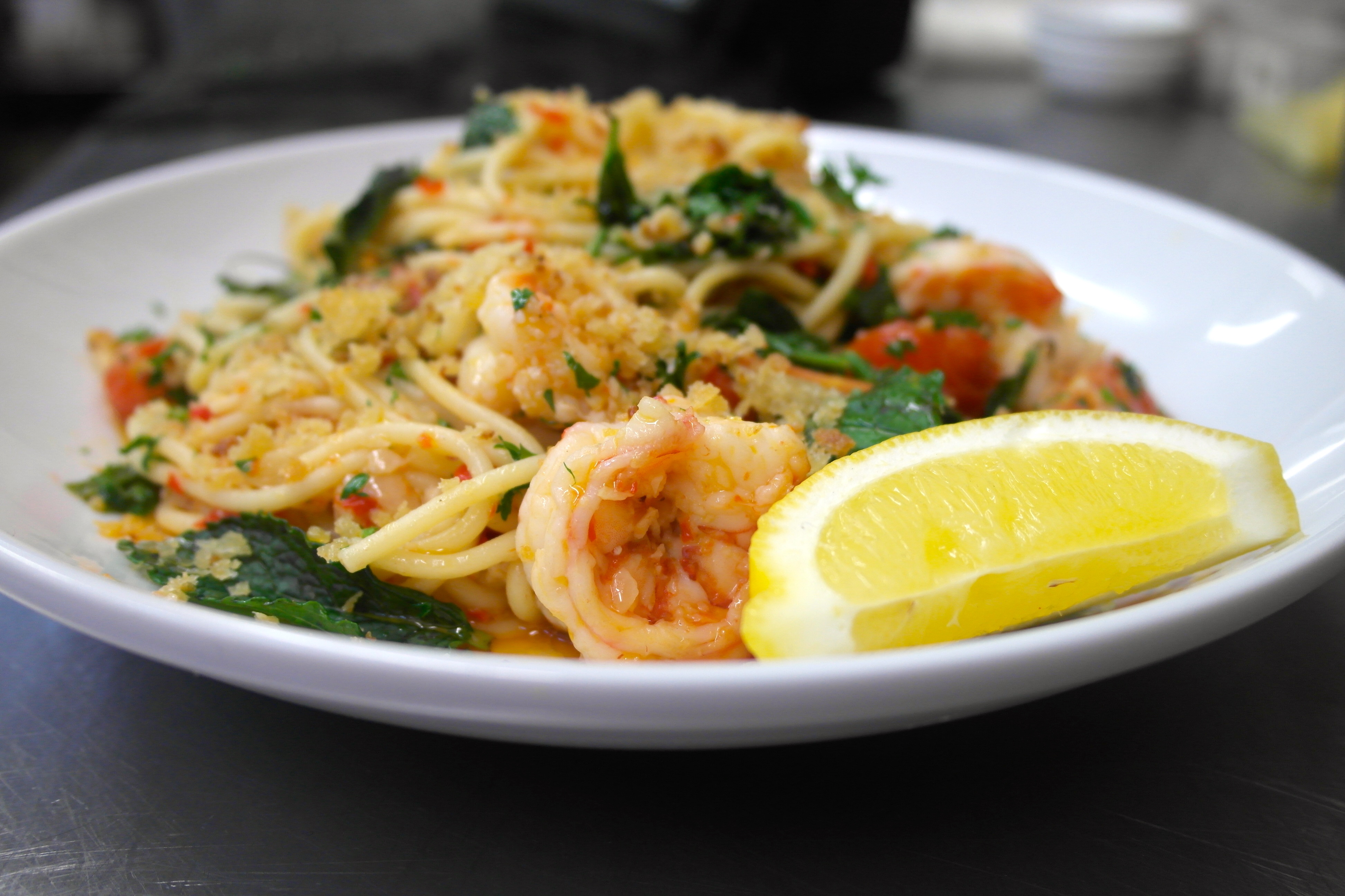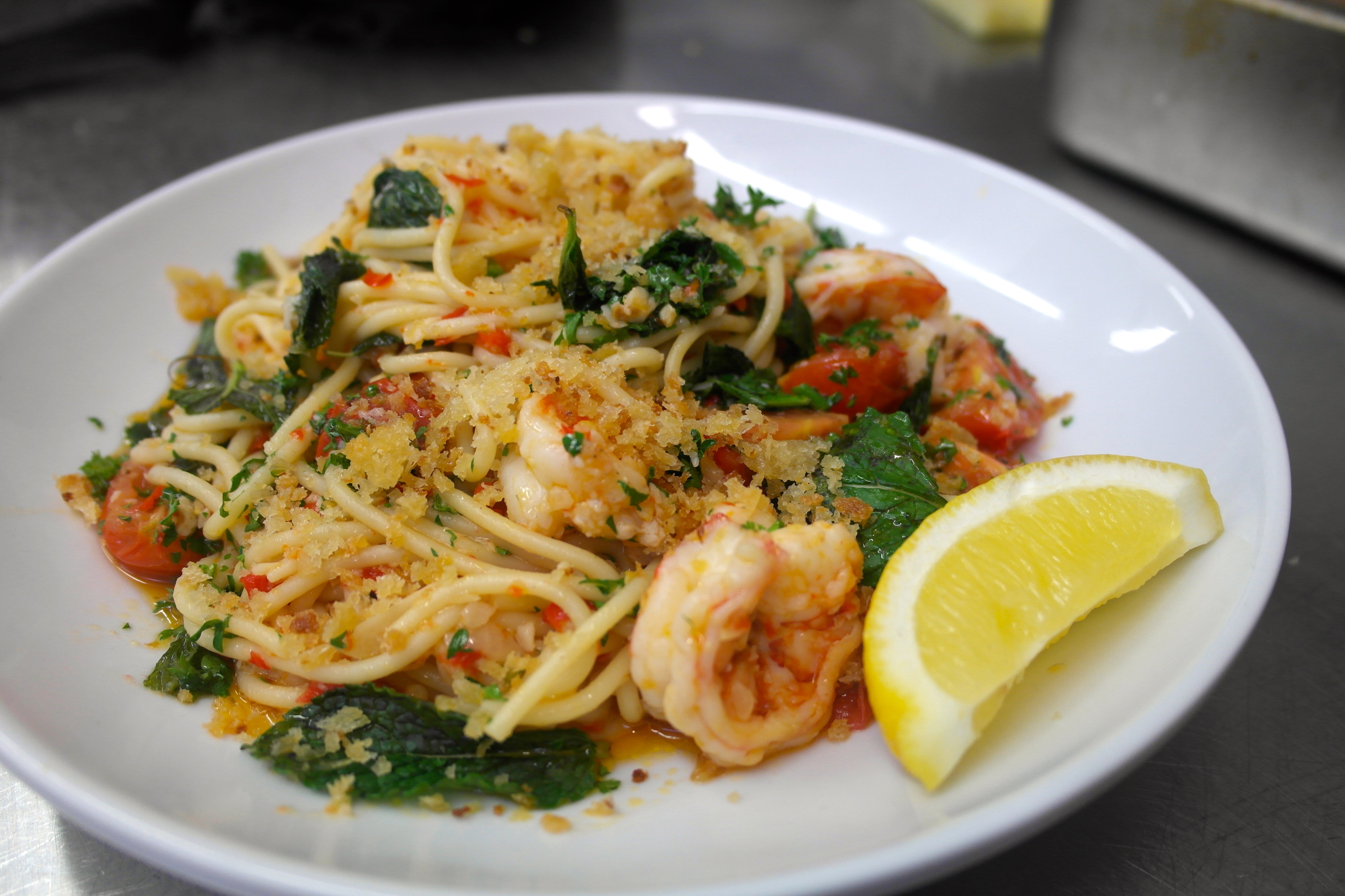 Pangrattata and lemon wedges to serve