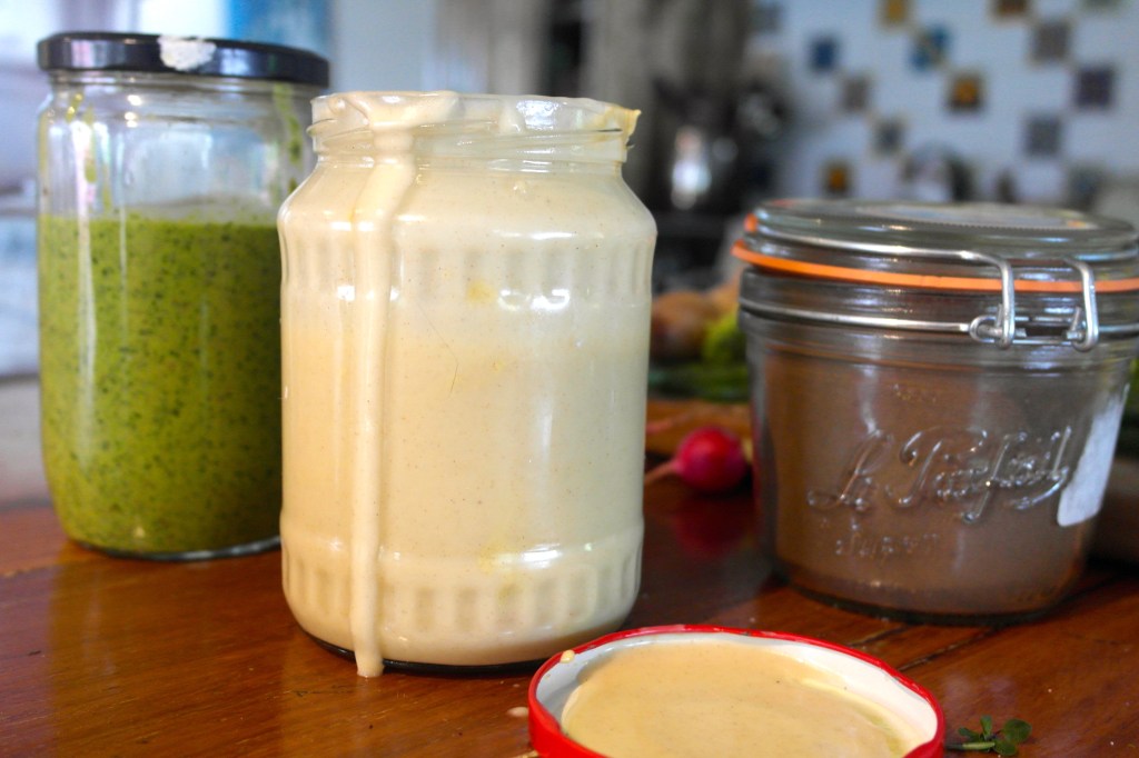 Slowly emulsify oil into other ingredients using a stick wizz or whisk or possibly a small branch with the leaves removed (it’s the same as that mayonnaise thing you learnt about that one time).