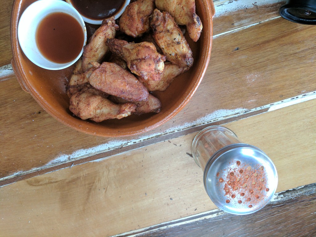 Let the wings have a little smoky loving; 30-ish minutes for full wings and 20-ish minutes for wing segments, or until cooked. It is totally legit to cut one open and check that they are done though, so don’t be afraid to do that just to be sure.