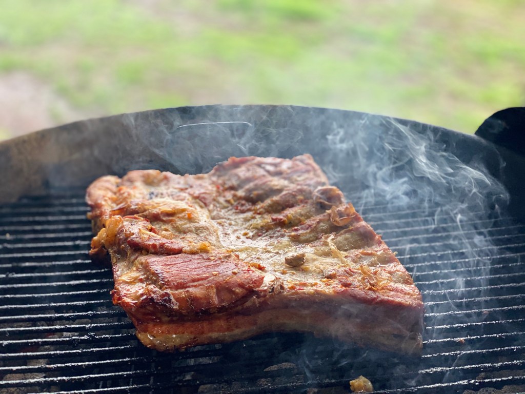 Flip pork over and give the bottom side 5 minutes of charcoal time.
