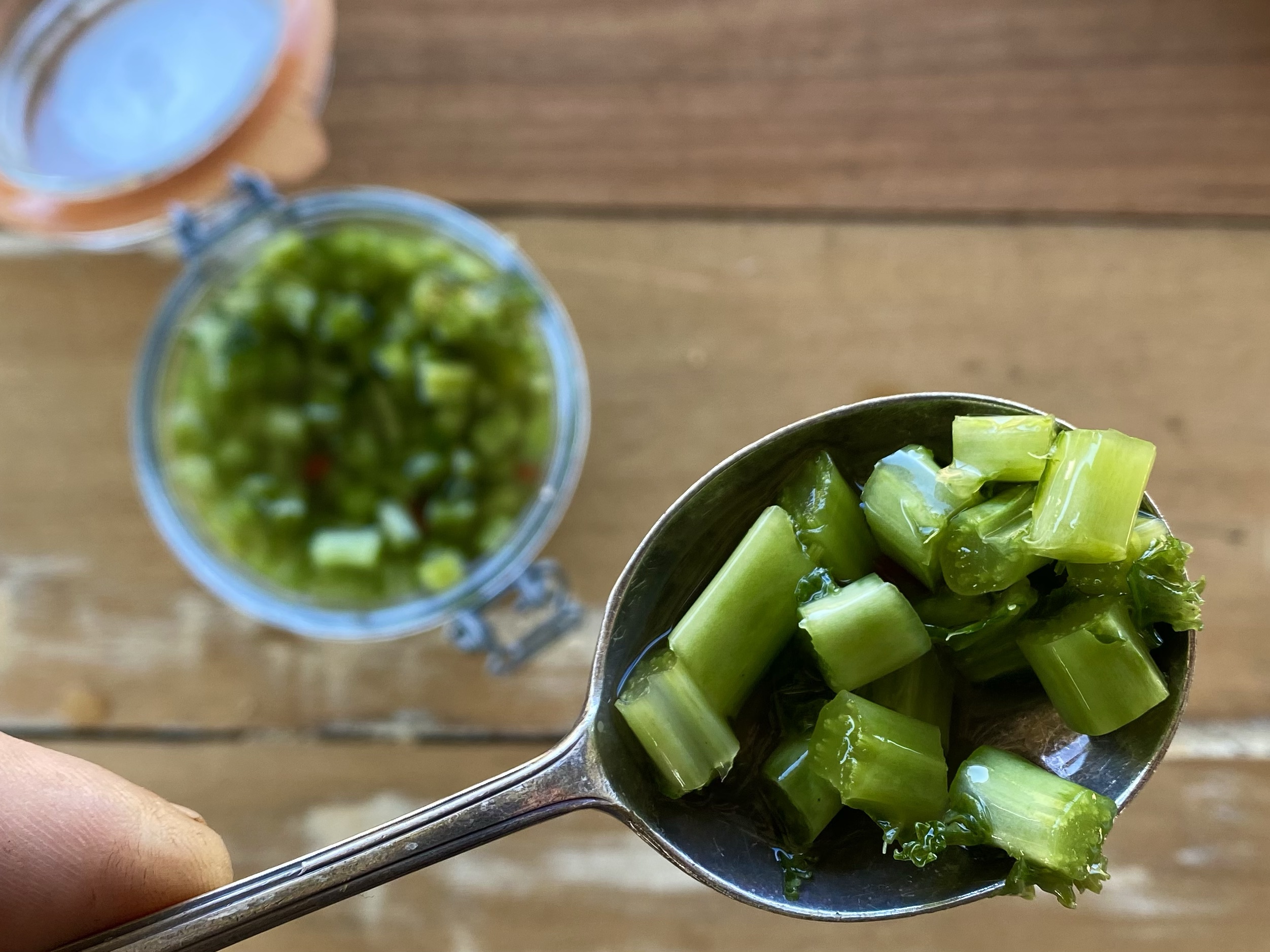 Add chopped kale stalks to the brine, cover and refrigerate for 2 days.