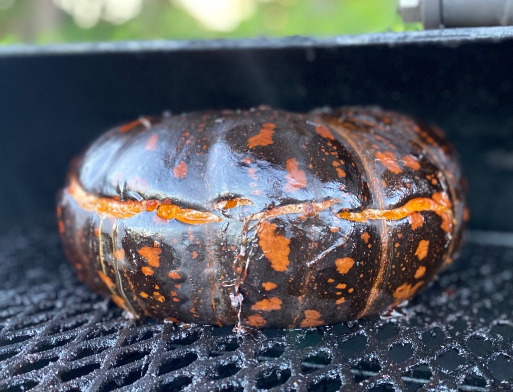 There is something special about a pumpkin that has been slowly roasted whole in a smoker or in the coals of a fire. Slightly smoky, roasty, sweet and soft deliciousness.