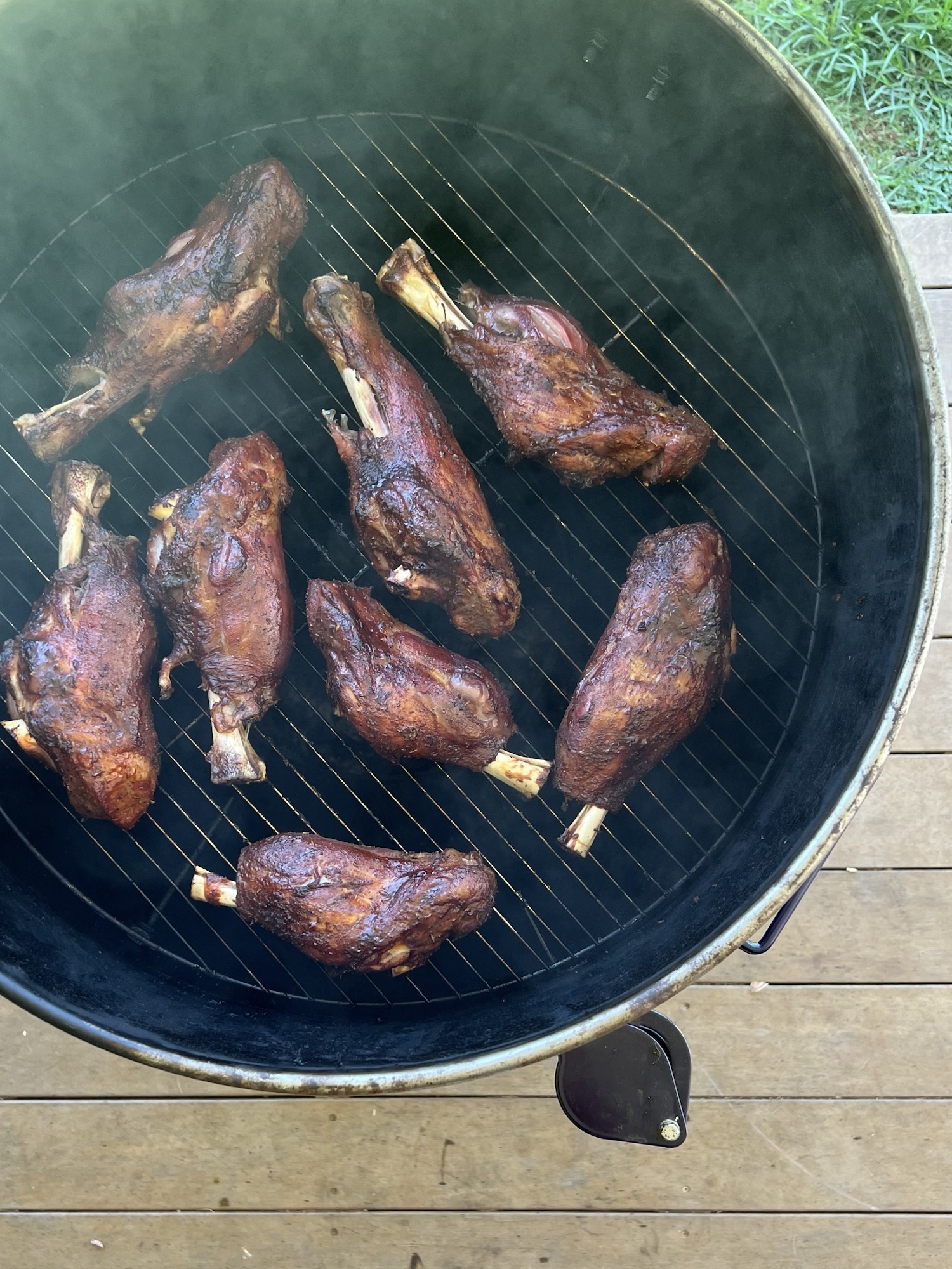 Place shanks into smoker and cook for 1 hour 15 minutes.