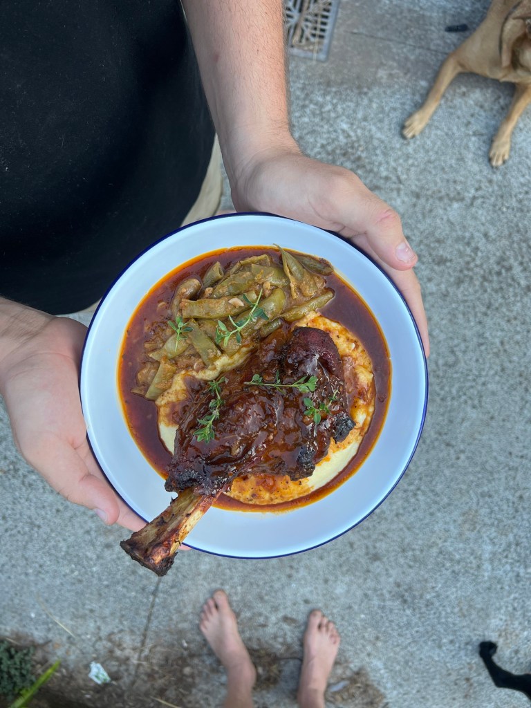 SMOKED LAMB SHANKS WITH BBQ SAUCE AND POLENTA