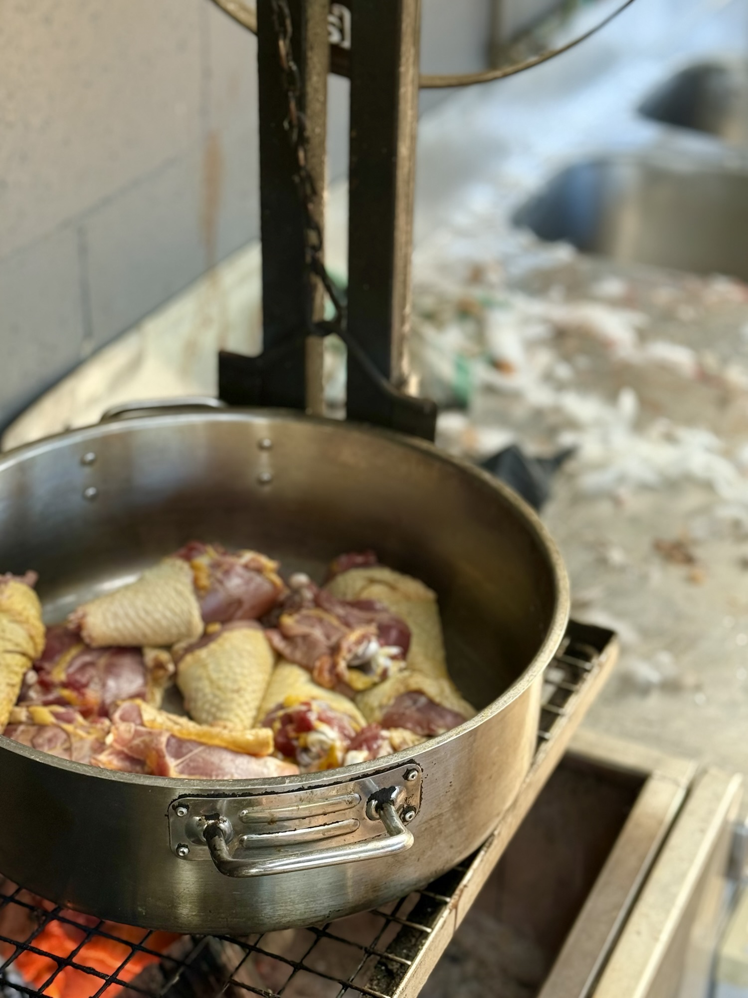 I will only use chicken marylands for this dish because I really do love the moistness, but the traditional meat to use is rooster and I can verify that if you have one you need to knock off it couldn’t go to a better cause. I have also been told by a French chef friend of mine that if you want to step it up a notch further, you should use capon, a castrated rooster and a product that is not readily available probably anywhere besides France.