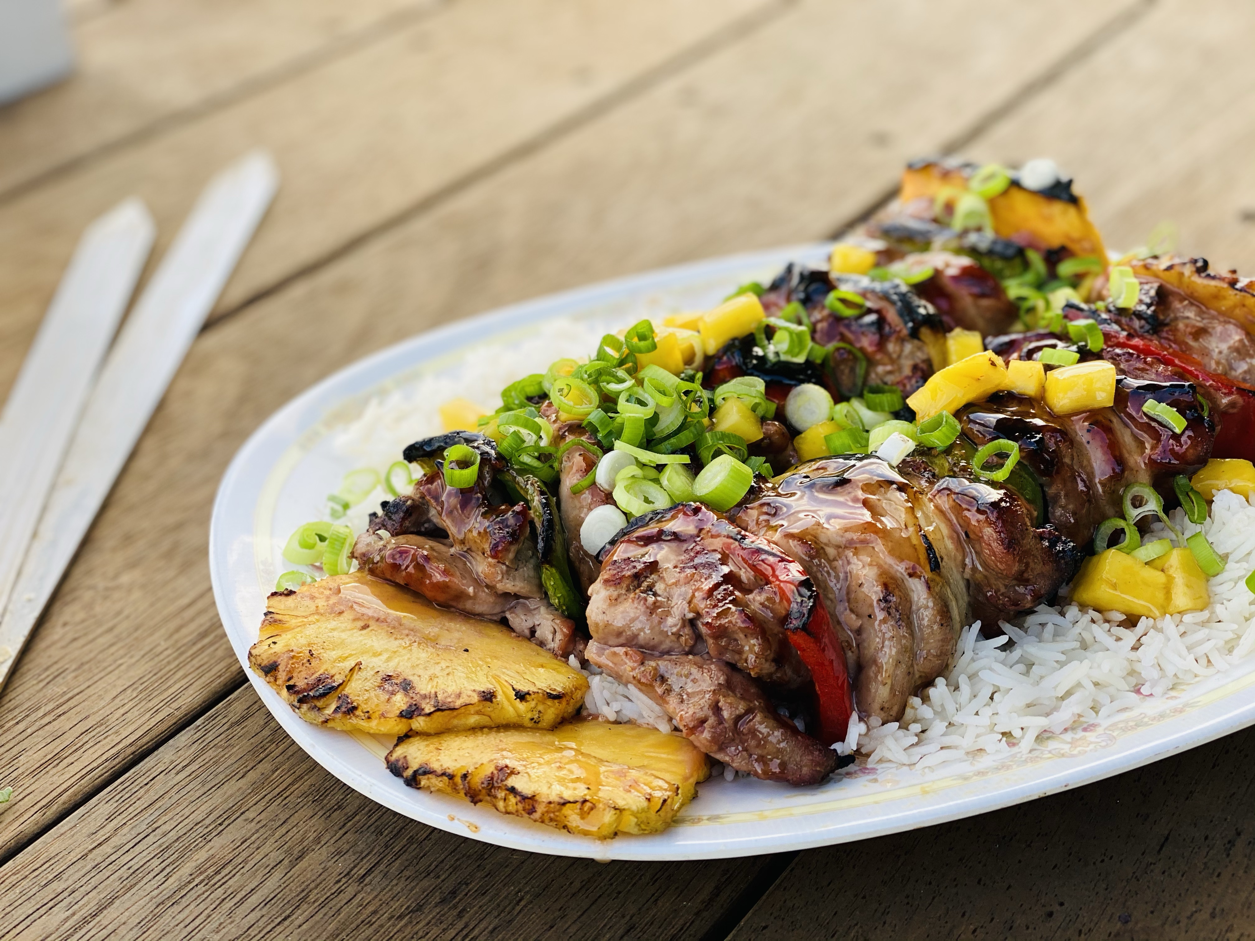 GRILLED SWEET AND SOUR PORK SKEWERS